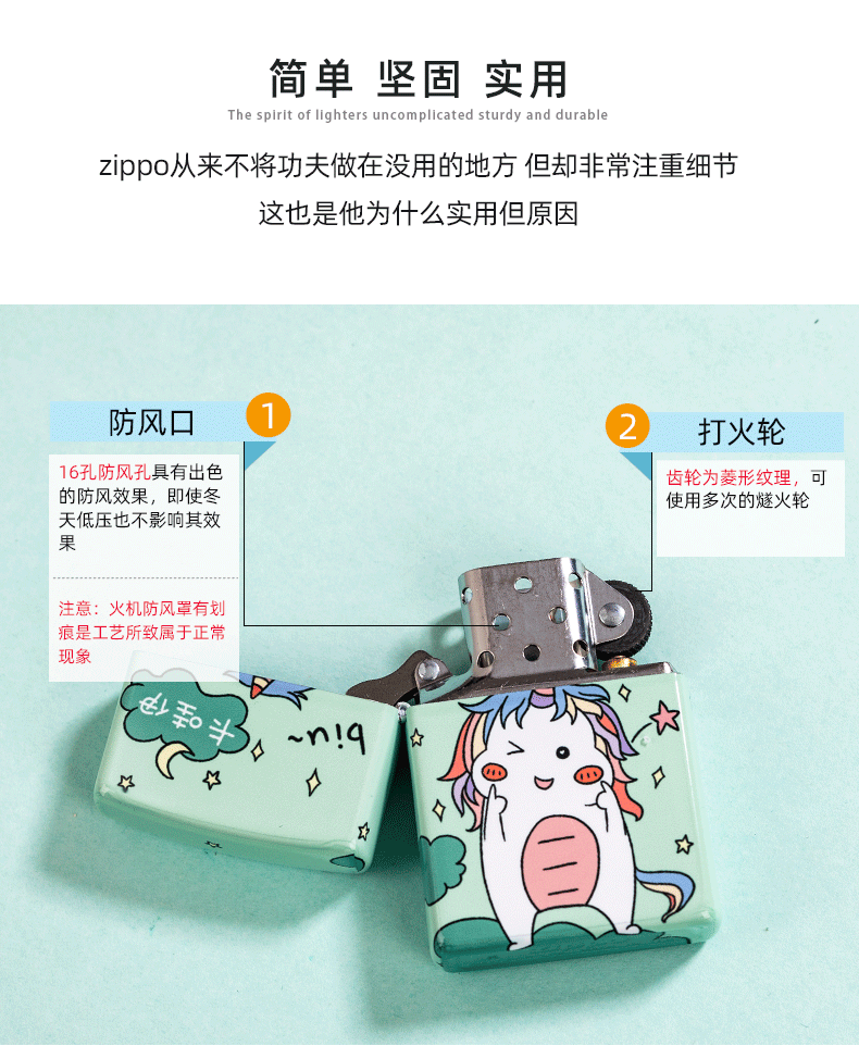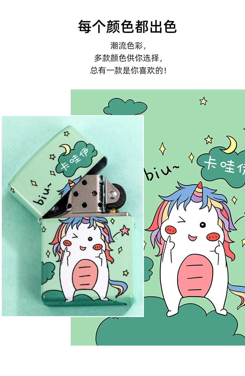 Подлинный Zippo более легкий подлинный американский Zppo Full Star Zoop Kerosene Zipoo Color Print Card Unicorn