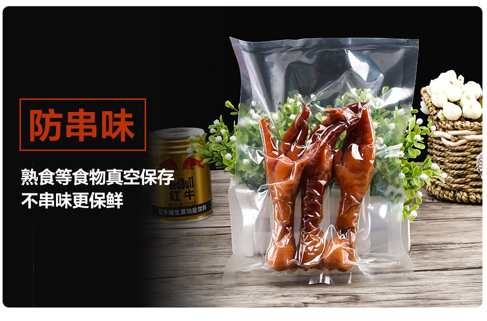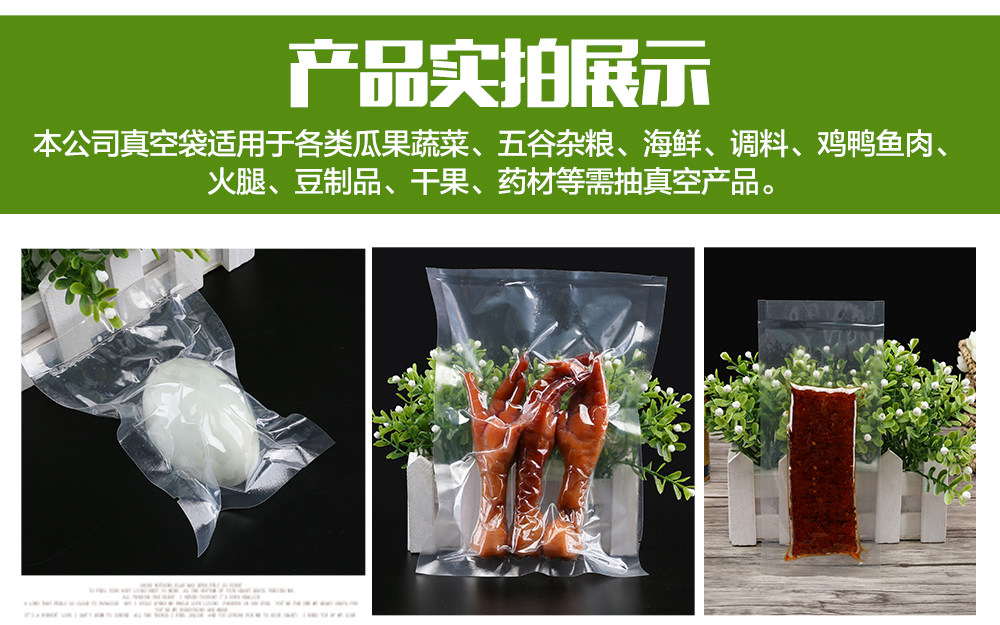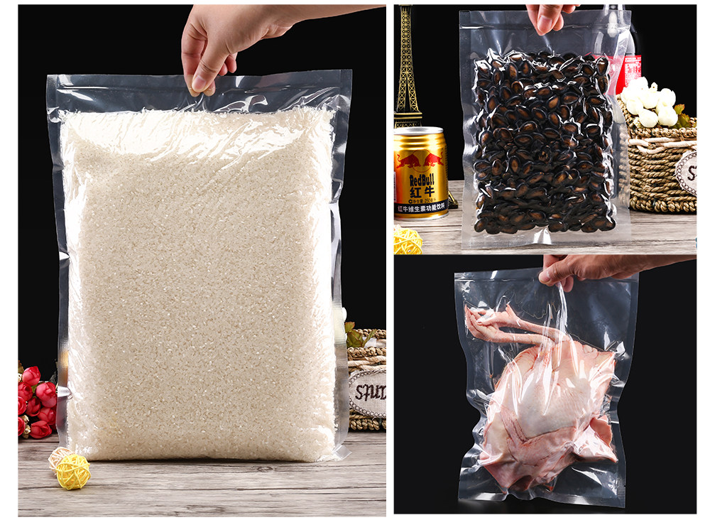 [Производительность]: прозрачные, неоксичные, безвкусные, пищевые упаковочные сумки могут использоваться в качестве вакуумной упаковки, хорошего герметизации, нелегко сломать утечку мешка, играть хорошую роль в предотвращении загрязнения, продлении срока годности и сохранения свежести.Хорошая температурная устойчивость также подходит для упаковки продуктов, косметики и другой упаковки.