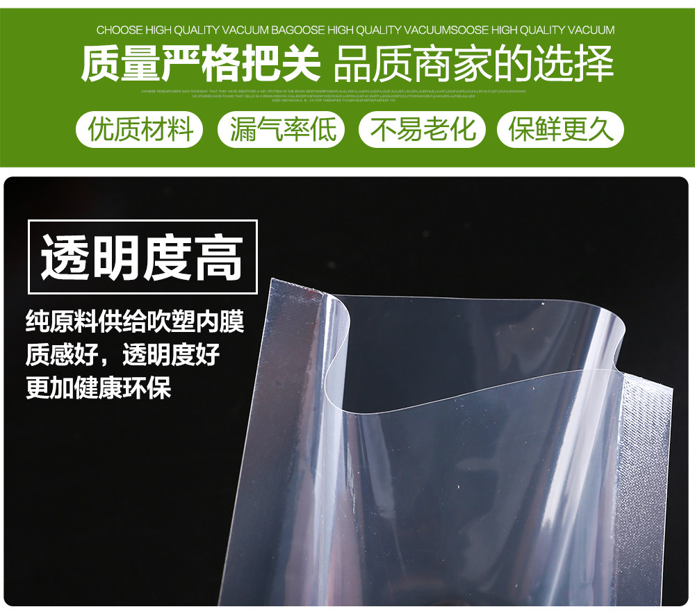 Небольшой здравый смысл: поскольку край границы может находиться на определенном расстоянии от сумки (если используется небольшая вакуумная машина, требуется 4 см, чтобы поместить его, чтобы накачать сопло), и, как правило, доход от вакуумной моды не превышает 3 /4 сумки 3/4 - 3/4 сумки - 3/4 сумки - 3/4 сумки - 3/4 сумки. Должен.Таким образом, вы должны выбрать соответствующий размер в соответствии с размером продукта и вашей упаковочной машиной при покупке!