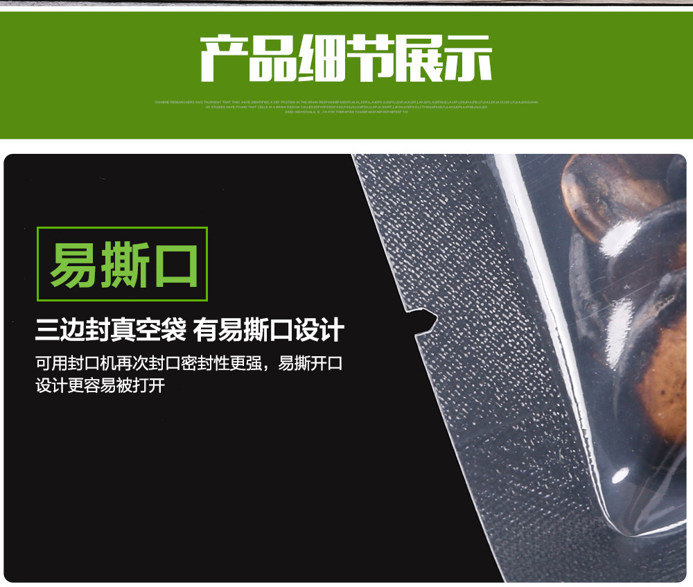 [Область применения]: вакуумная упаковка (длительное сохранение) для категорий продуктов питания; вакуумная упаковка (нелегкая ржавчина) для аппаратных инструментов; также используется для чая, сушеных фруктов, лекарств, мяса и т. Д.