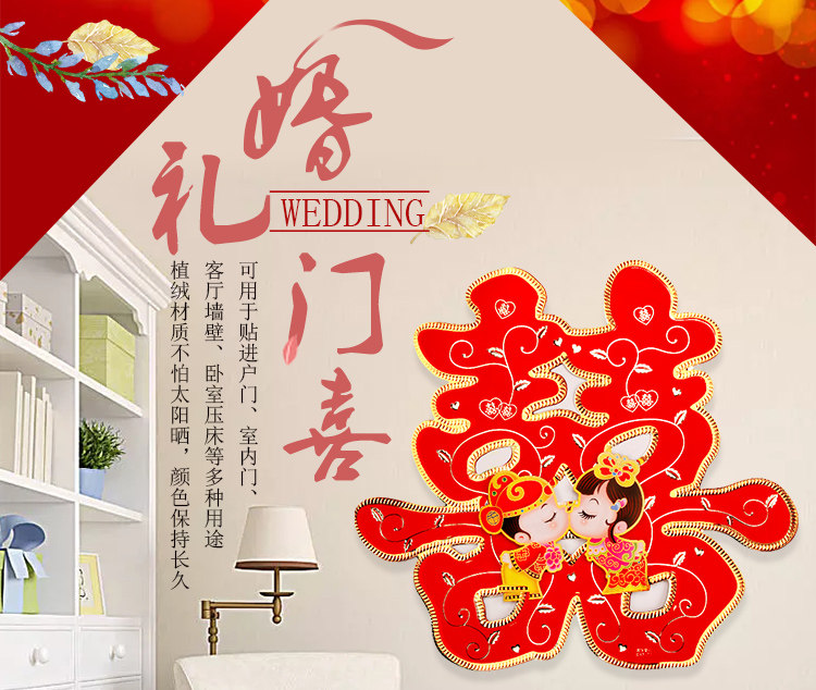 Свадьба счастливая наклейка на дверь персонажа Свадебная комната Украшение Свадебные свадебные спальни для спальни свадьба бархат Большой Хай персонажи наклейки с персонажами