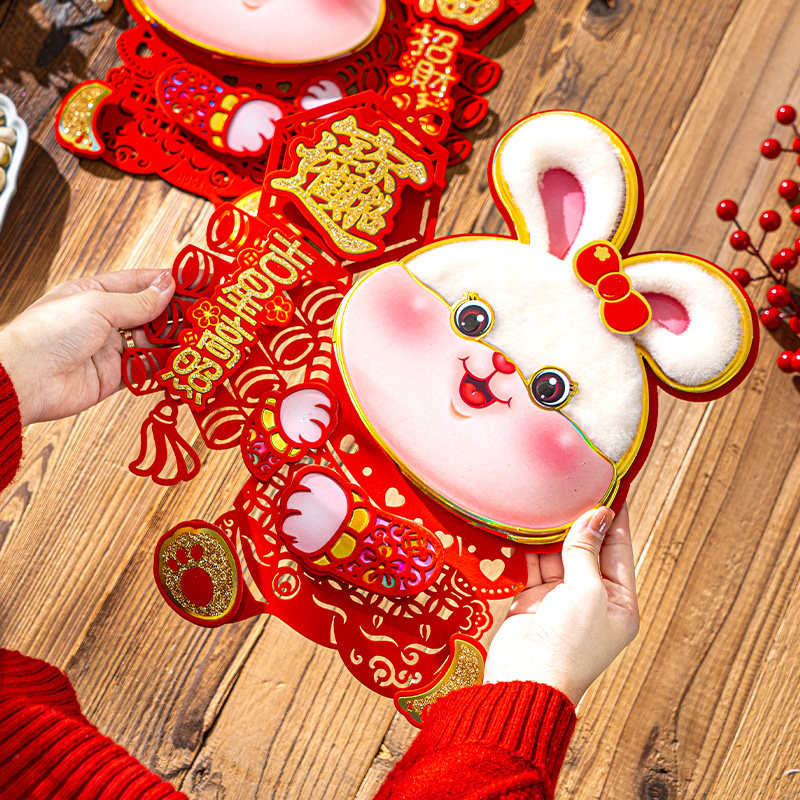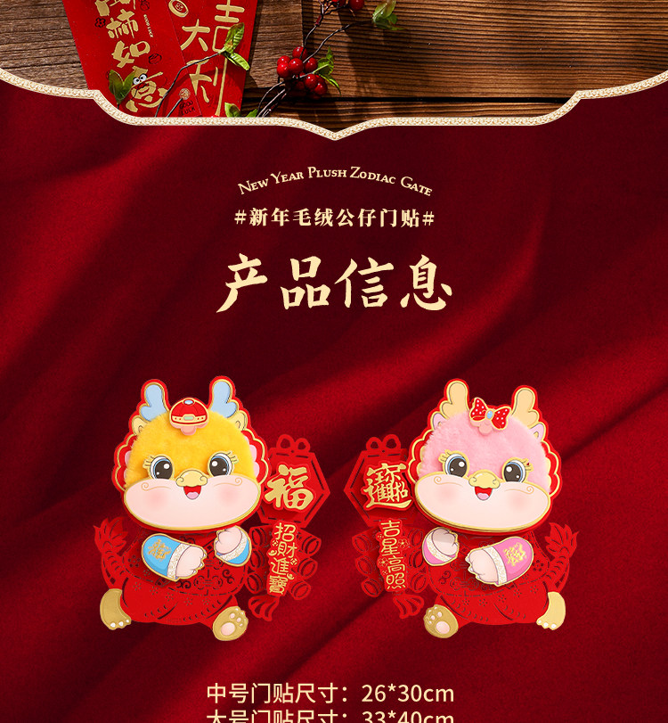 2024 Фози наклейка gate Zodiac Post Dragon Год Новый год творческая бархатная окна цветочная паста Новый год Весенний фестиваль декоративные бумаги наклейки