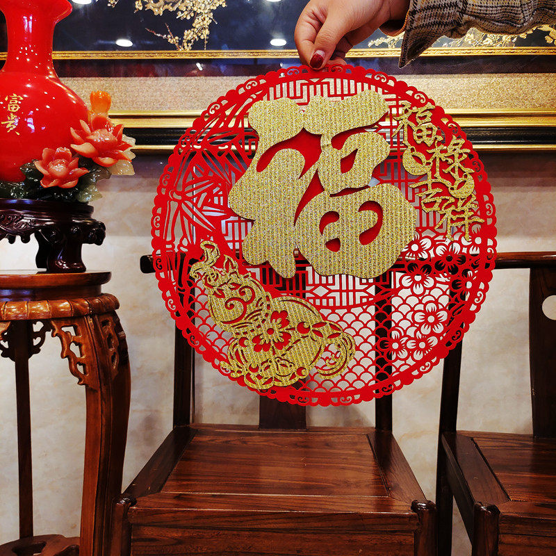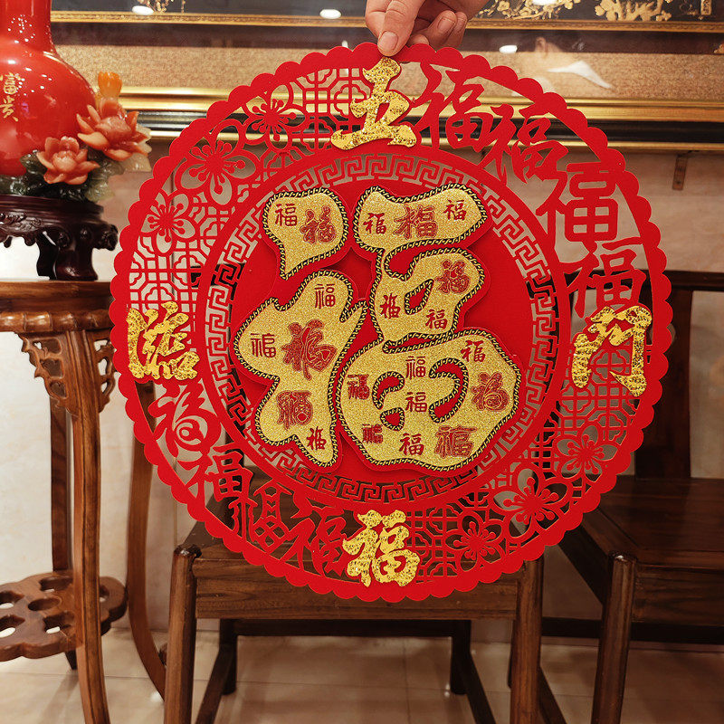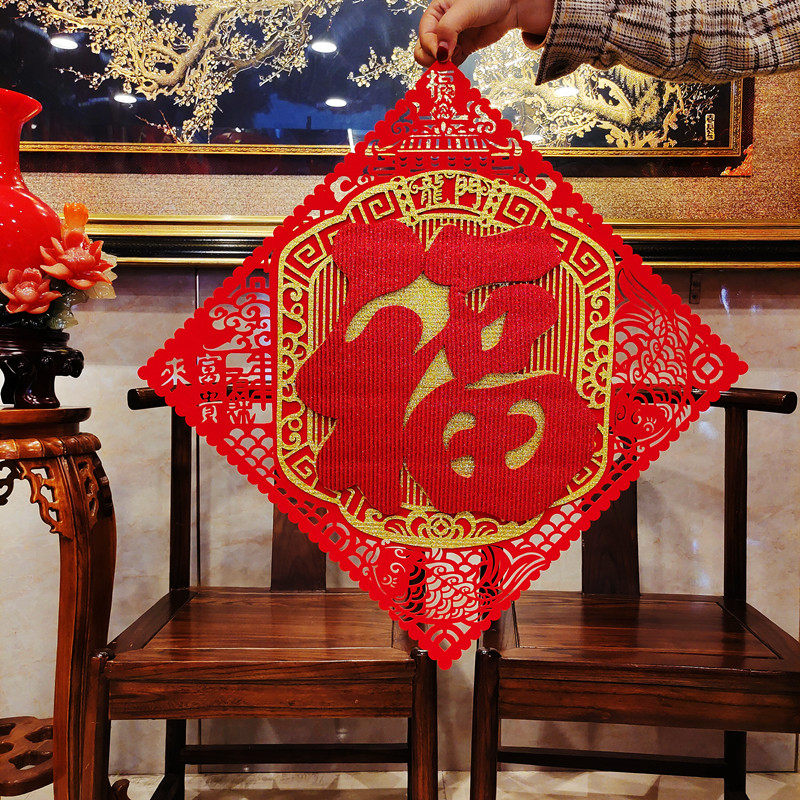 2024 Dragon Year Fuzi Gate Post Новый год весенний Новый год украшения наклейки на стенах, дверь дверной ткани, наклейка с персонажем благословения