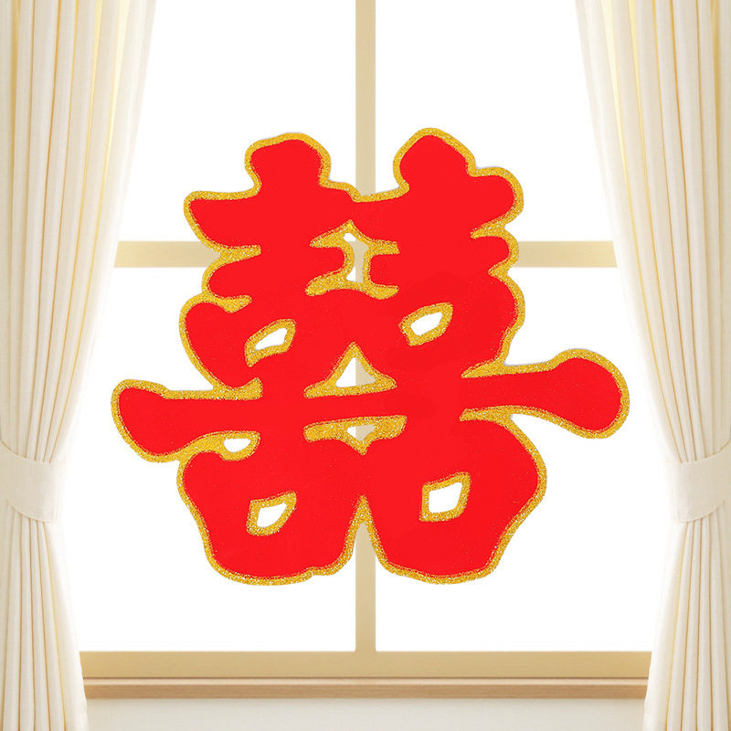 Сельский двор свадебные поставки Daquan Dahongxi Дверная наклейка с тремя меры Большой радость персонаж Специальное украшение двойное 囍
