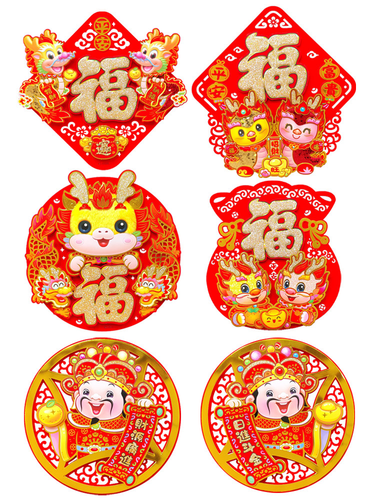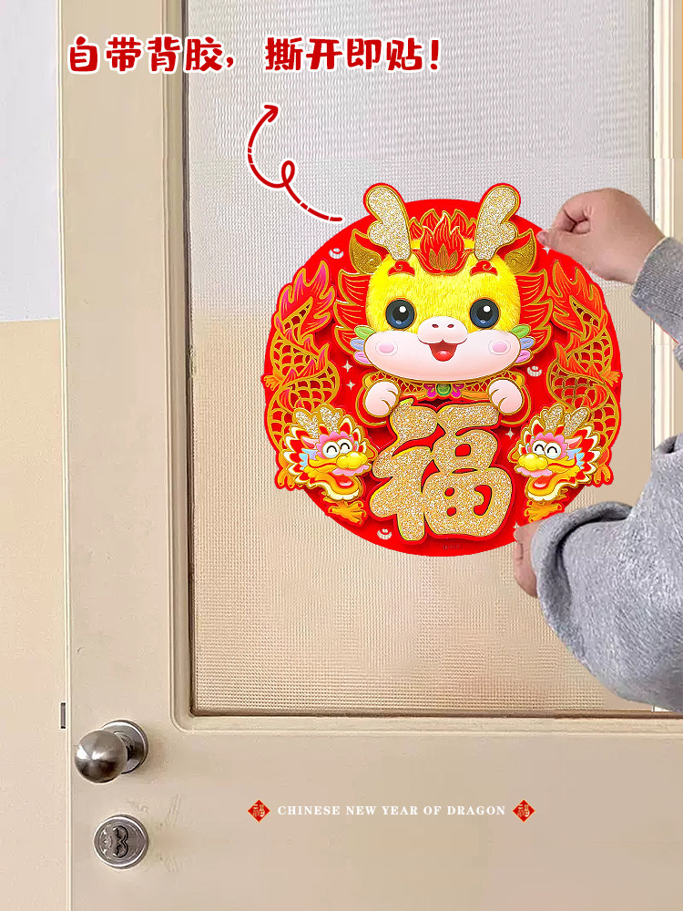 2024 Dragon Year's Boutique Fu Zi Gate Sterail Stereo Creative Felt Self -Speck Window Flower Stick
