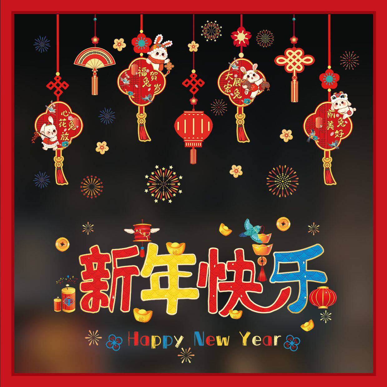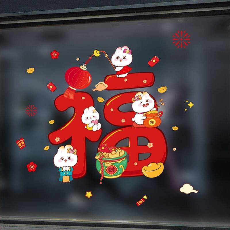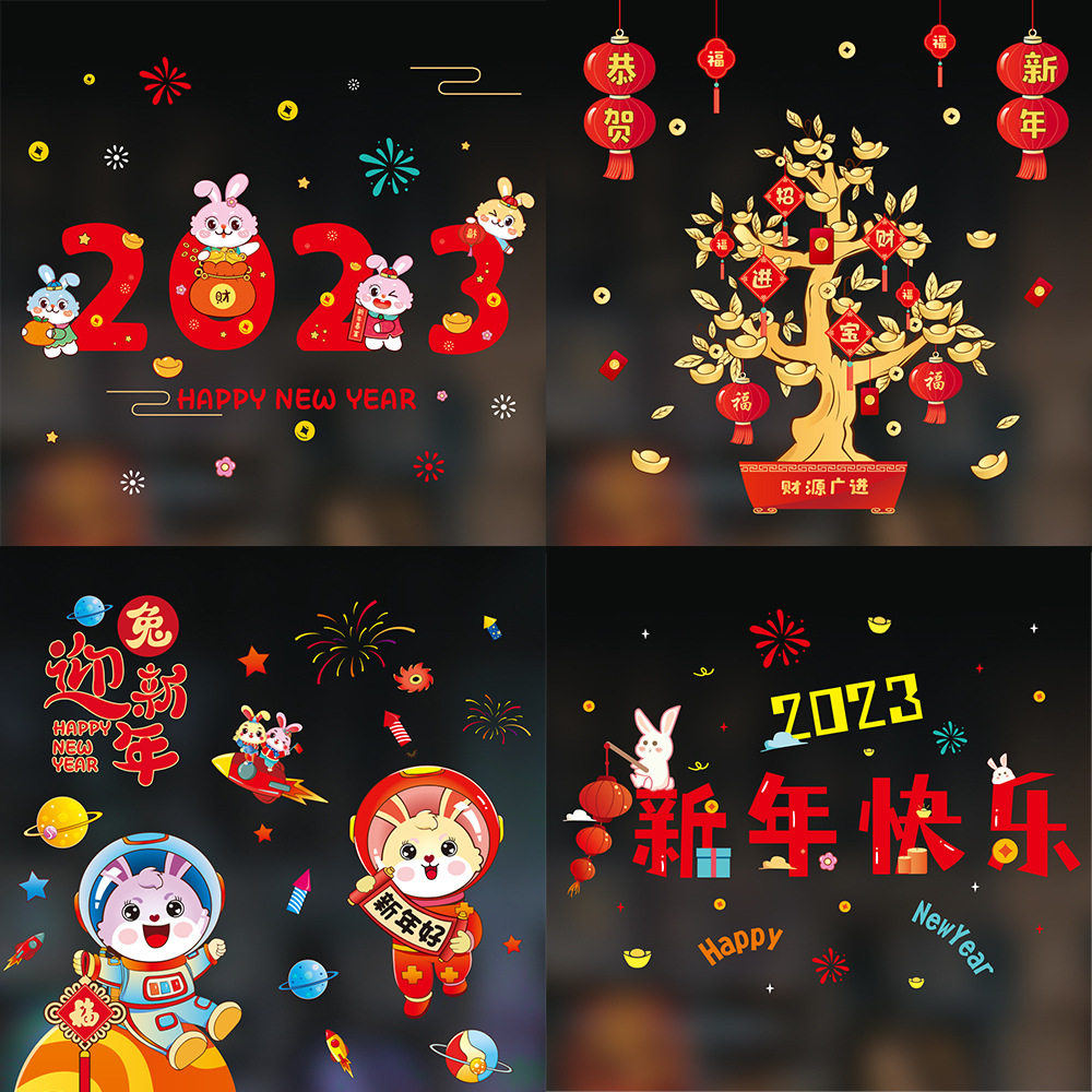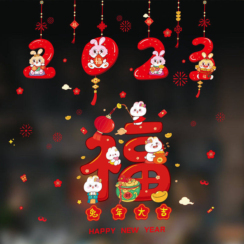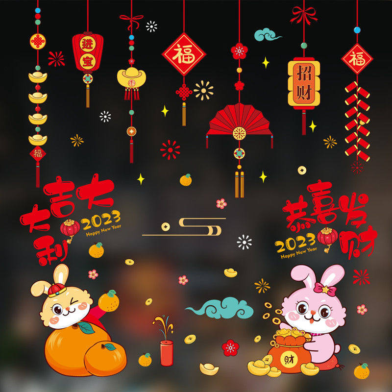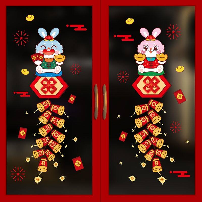 Весенняя электрическая стеклянная наклейка, декор, год кролика, 2023