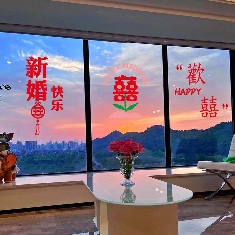 Статические наклейки со счастливыми словами на стеклянных наклейках, набор для украшения свадебного зала, свадебные принадлежности для мужчин и женщин, свадебные украшения для окон.