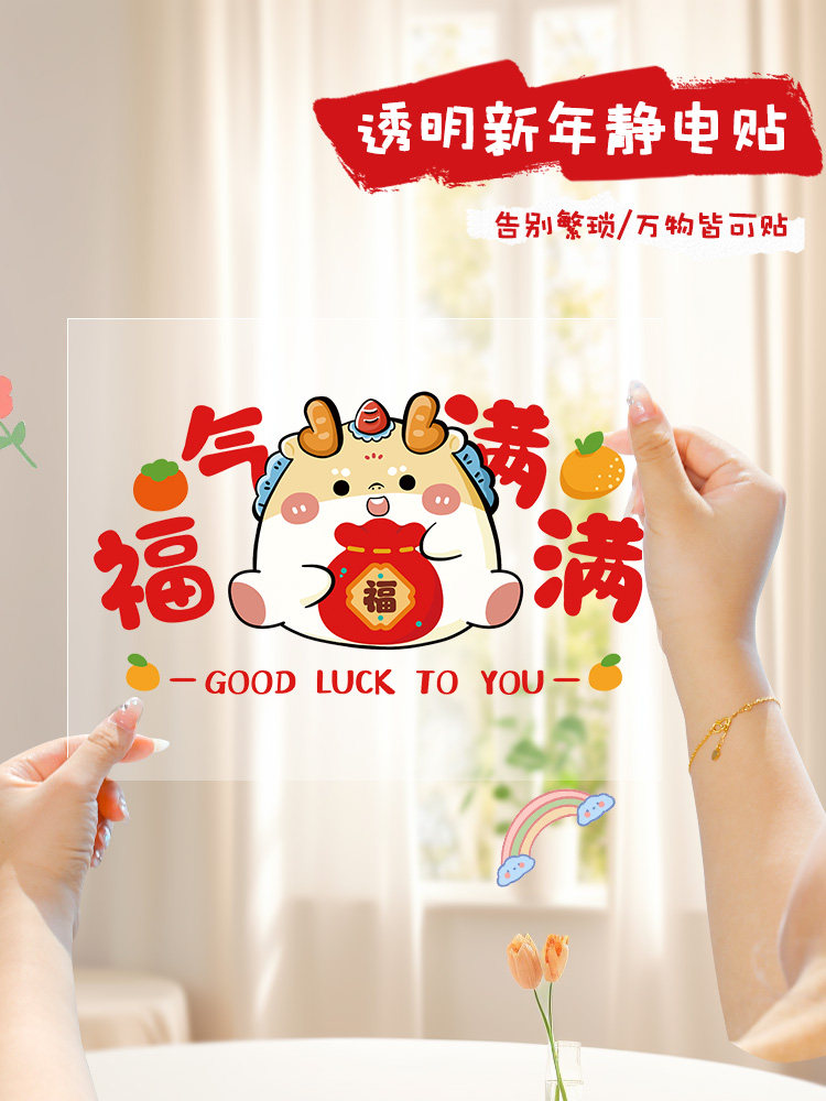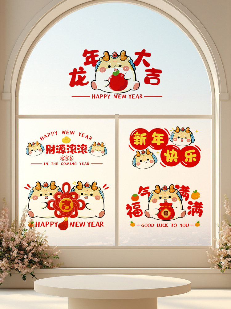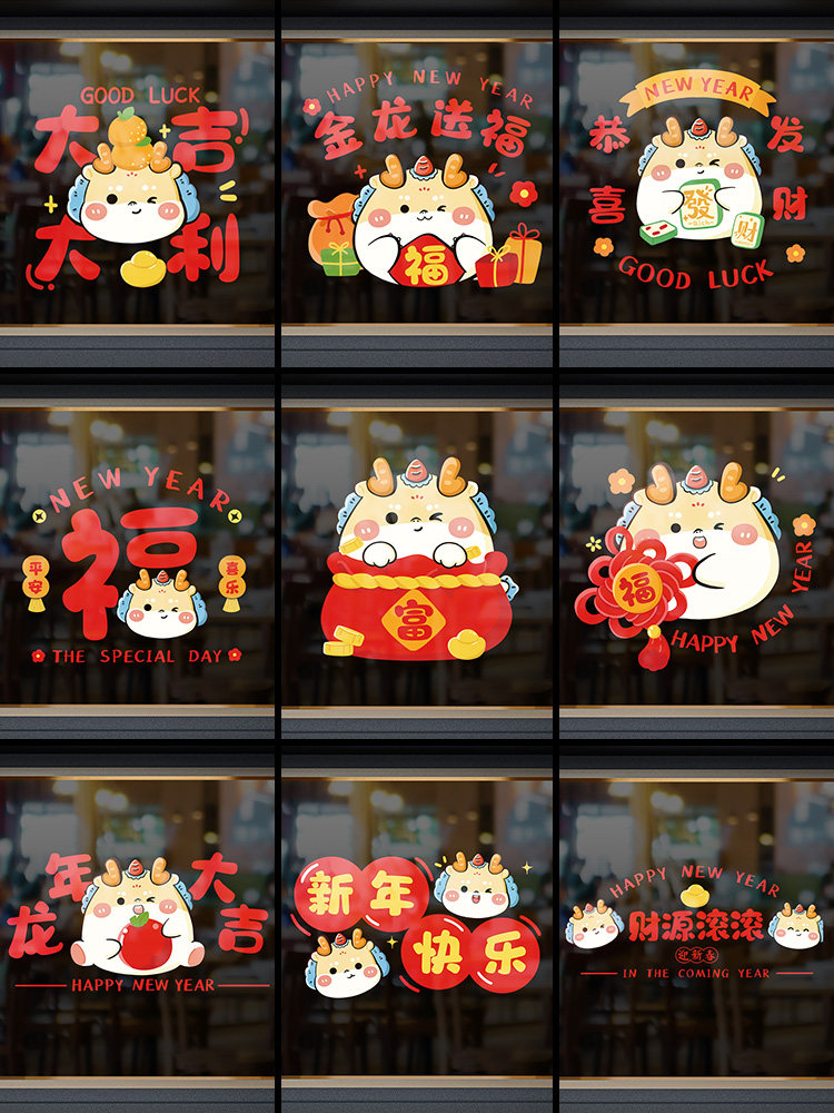Прямые поставки 2024 новых электростатических наклеек к Году Дракона, наклеек на окна, наклейки на стекла, наклейки на двери, новогоднее украшение дома.
