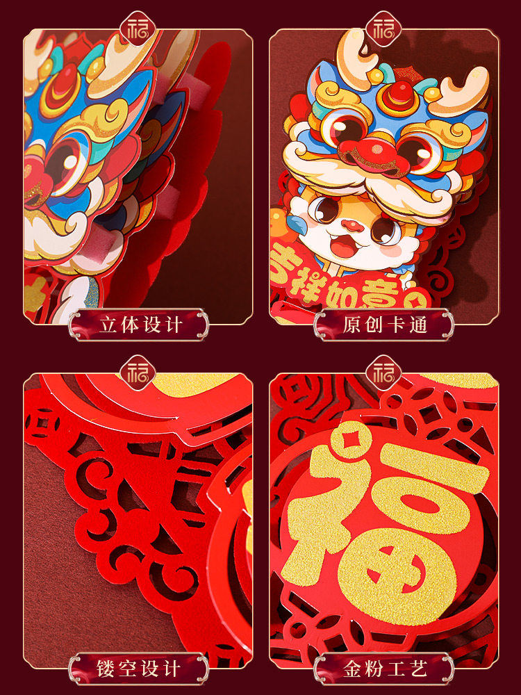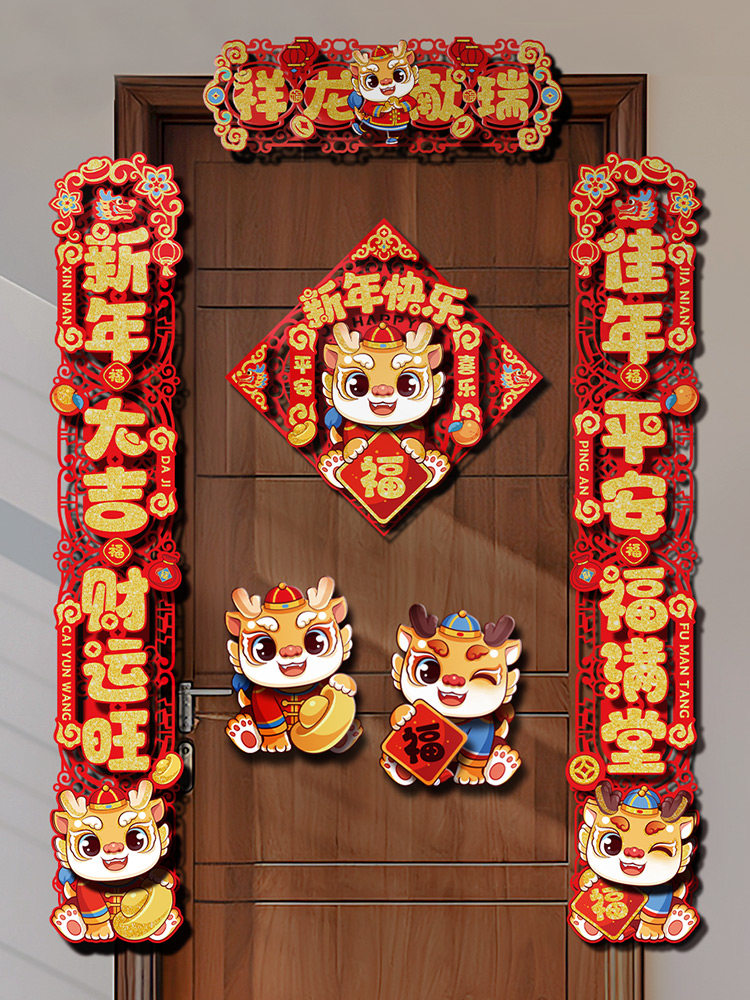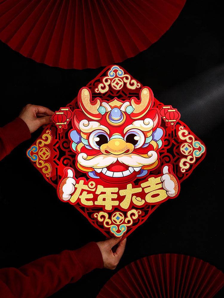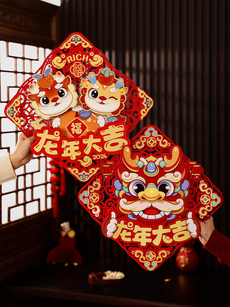 Прямое снабжение 2024 Магнитное благословение Дверь Пост дракон новогоднего новогоднего новогоднего ворота Новая годовая цветочная бумага -дверь, обрезающая дверь