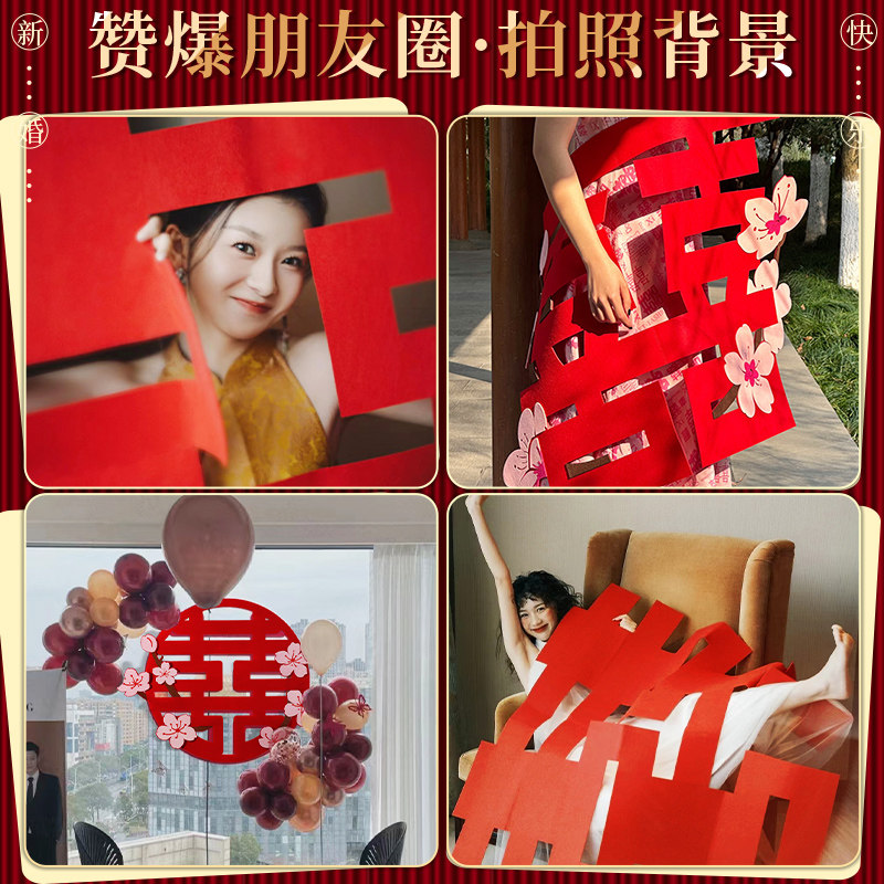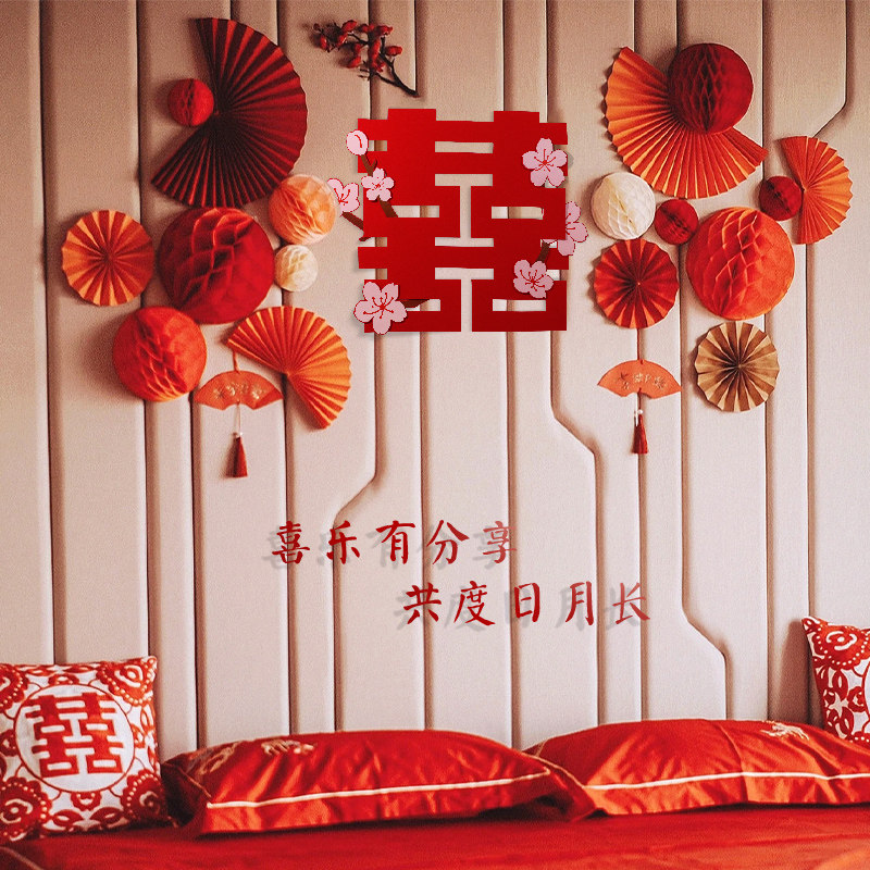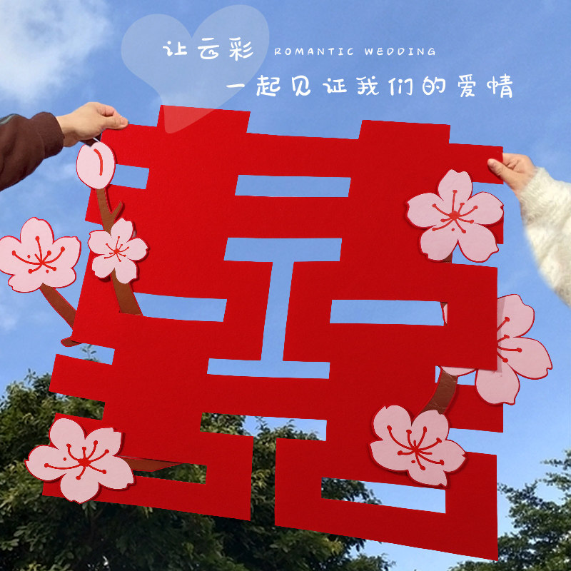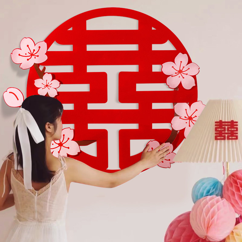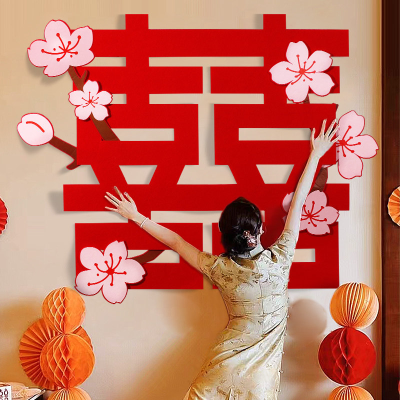 Большие цветочные наклейки «Happy» для украшения свадебного зала, специальные свадебные наклейки с наклейками «囍», украшение спальни, свадебные принадлежности