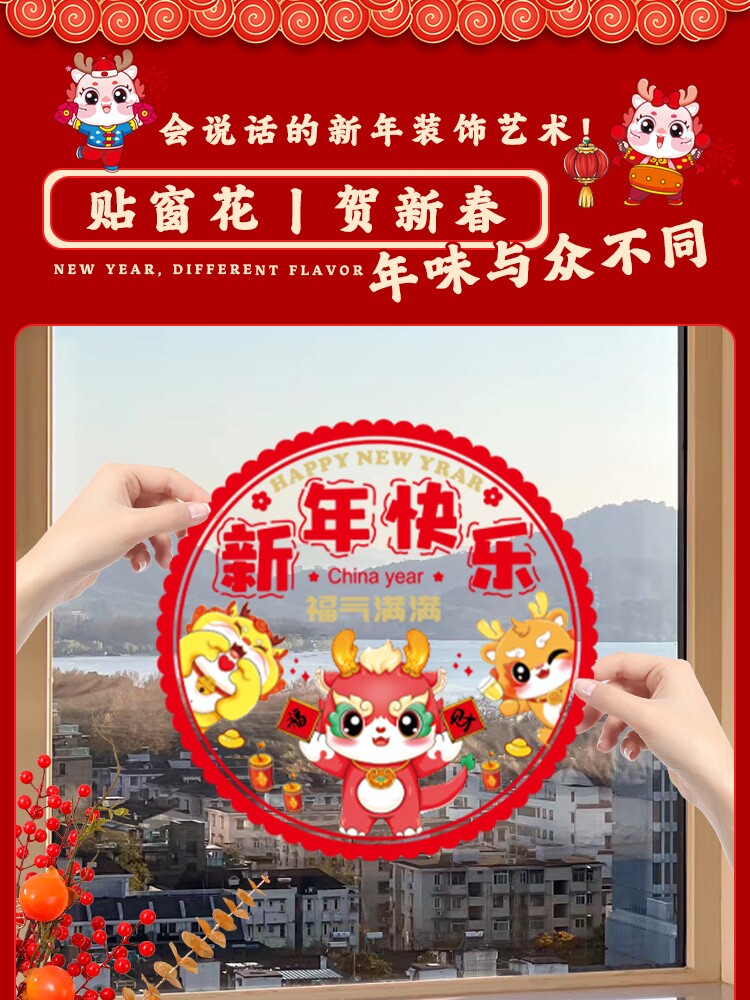 2024 Dragon Год Новогоднего Окна Цветочная Статическая наклейка Стеклянная наклейка на стикеры Новый год Новый год.