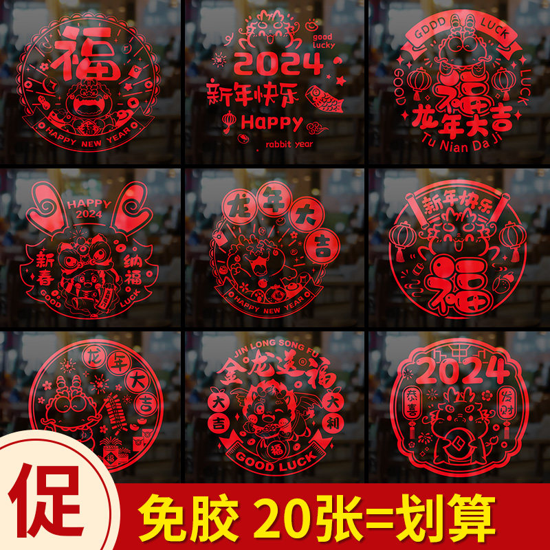 2024 Новый год новогодний Ford Post Статический кусок драконьи годовой окно цветочная бумага Стеклянная наклейка Бумага -Наклейка с наклейкой на дверь