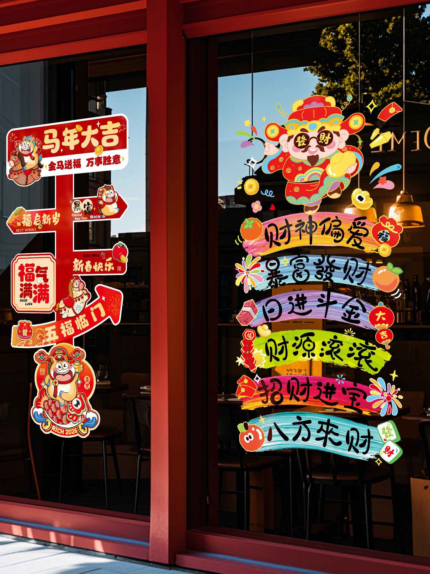 Год Лошади, Бог Богатства, статическая наклейка 2026, новая наклейка на дверь с благословением, весенний фестиваль, зодиак, оконный цветок, новогоднее украшение, наклейка на окно