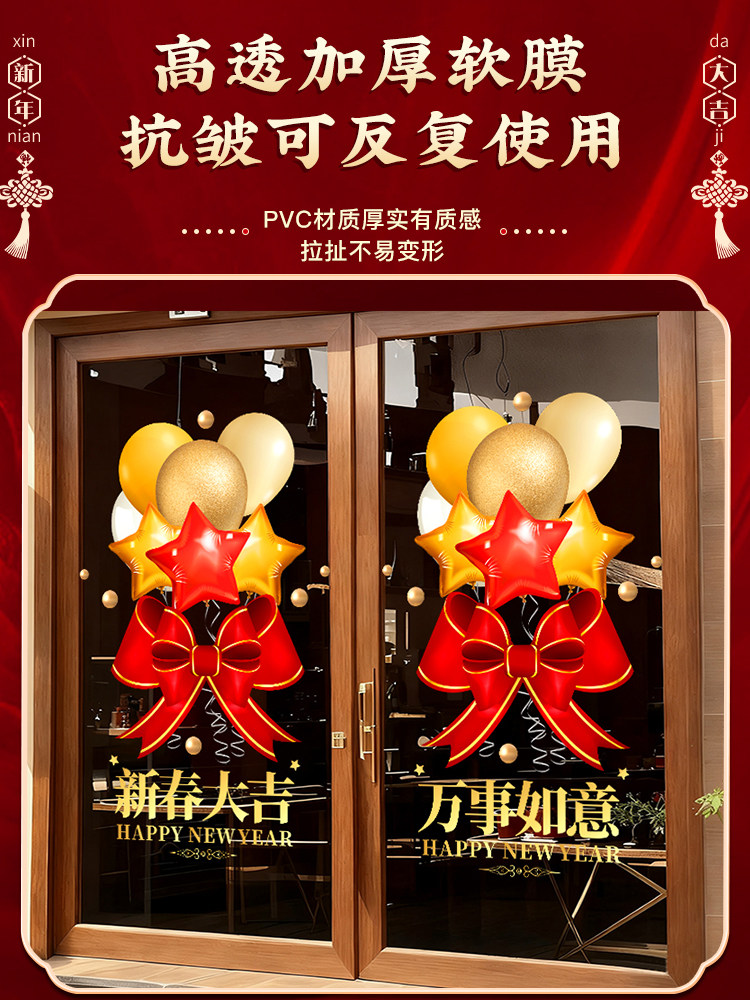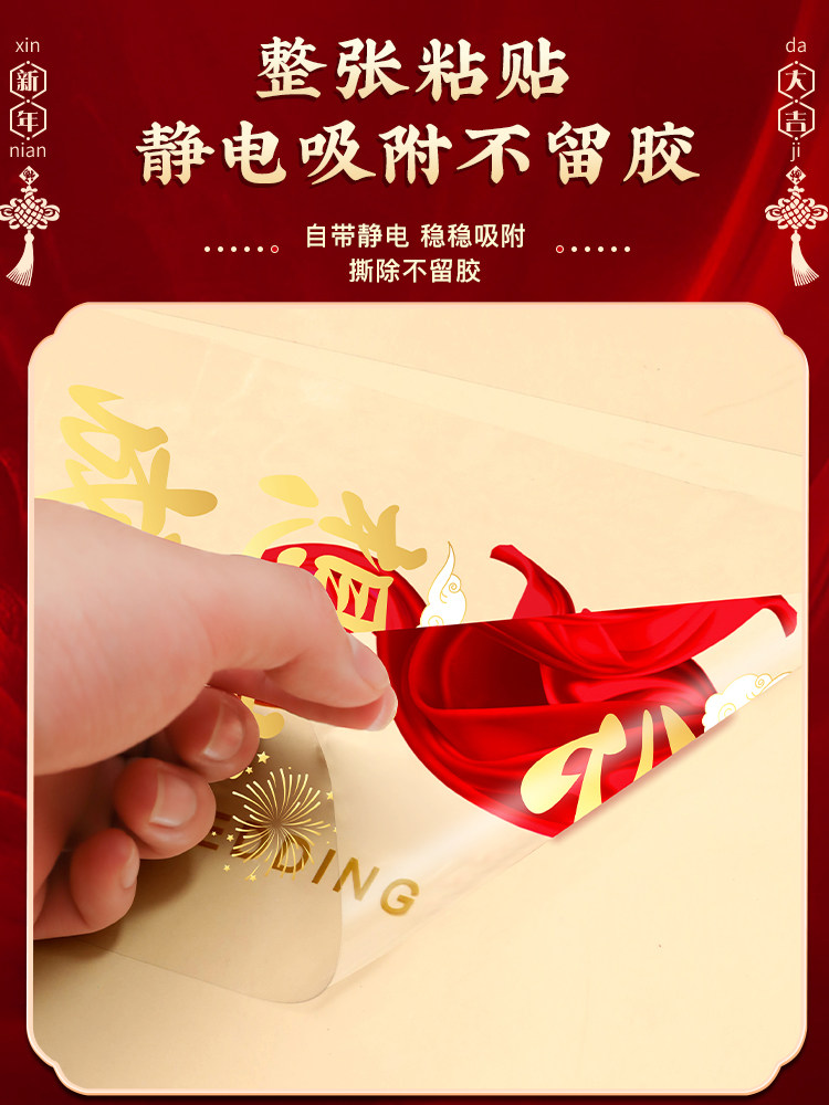 Год Лошади Наклейка на стеклянную дверь Новогодняя статическая наклейка Весенний фестиваль Украшение магазина Наклейка на окно 2026 Новогодний макет Наклейка с благословением