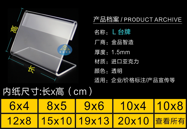 Акриловая цена бренд L -Тип Тайвань вывеска таблицы таблицы таблицы таблицы таблицы карты карты Органическая карта Лицензия 10*15CM6*9 Прозрачная