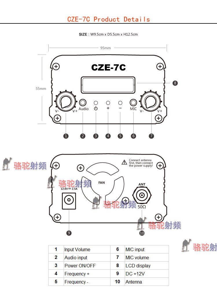 Высокий алюминиевый сплав.Вся алюминиевая поверхность окисляется для обработки, высокой и щедрой.ЖК -дисплей, частотный дисплей, громкость, регулировка входа микрофона.Поверхность установлена, конструкция схемы жесткая, встроенный одно -хип -микрокомпьютер, используются параметры автоматической памяти памяти.