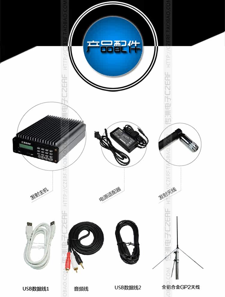 [GP2天线全套:包括(主机+电源+3.5转莲花头音频线+双莲花头音频线+USB公对公数据线+USB T型口转大口DAC线+][GP2型1/4波长][全铝合金伞形天线][+15米馈线+螺旋橡胶小天线)]