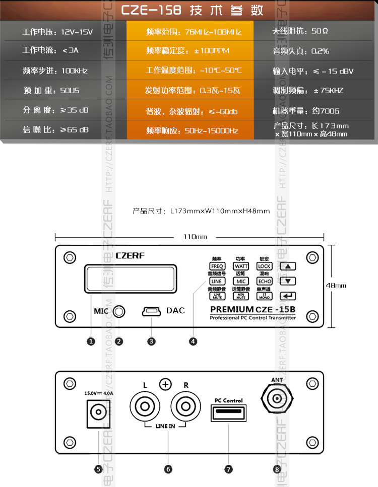 Чуанчжоу Электронный CZE-15B FM FM FM Launcher Launcher Беспроводной аудио-эмиттер Театр автомобилей