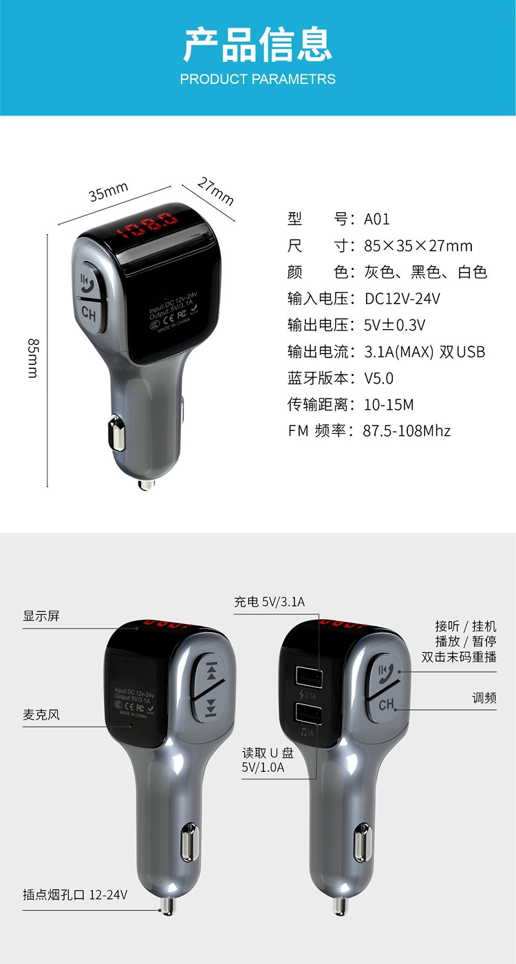 Автомобиль mp3 -плеер Bluetooth -приемник автомобиль FM запуск не -протяжении музыкальной песни мобильный телефон быстрое зарядное устройство