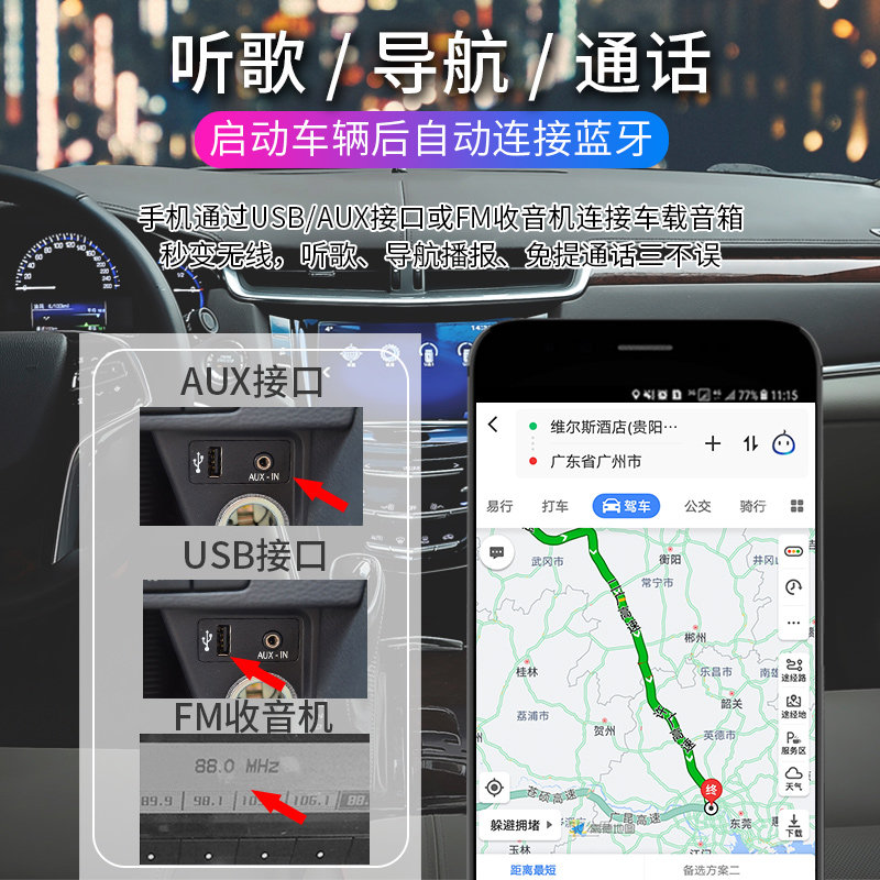 Car Bluetooth -приемник CD Machine FM Radio Launch Cable Disceer преобразовать беспроводной USB в Aux Blue