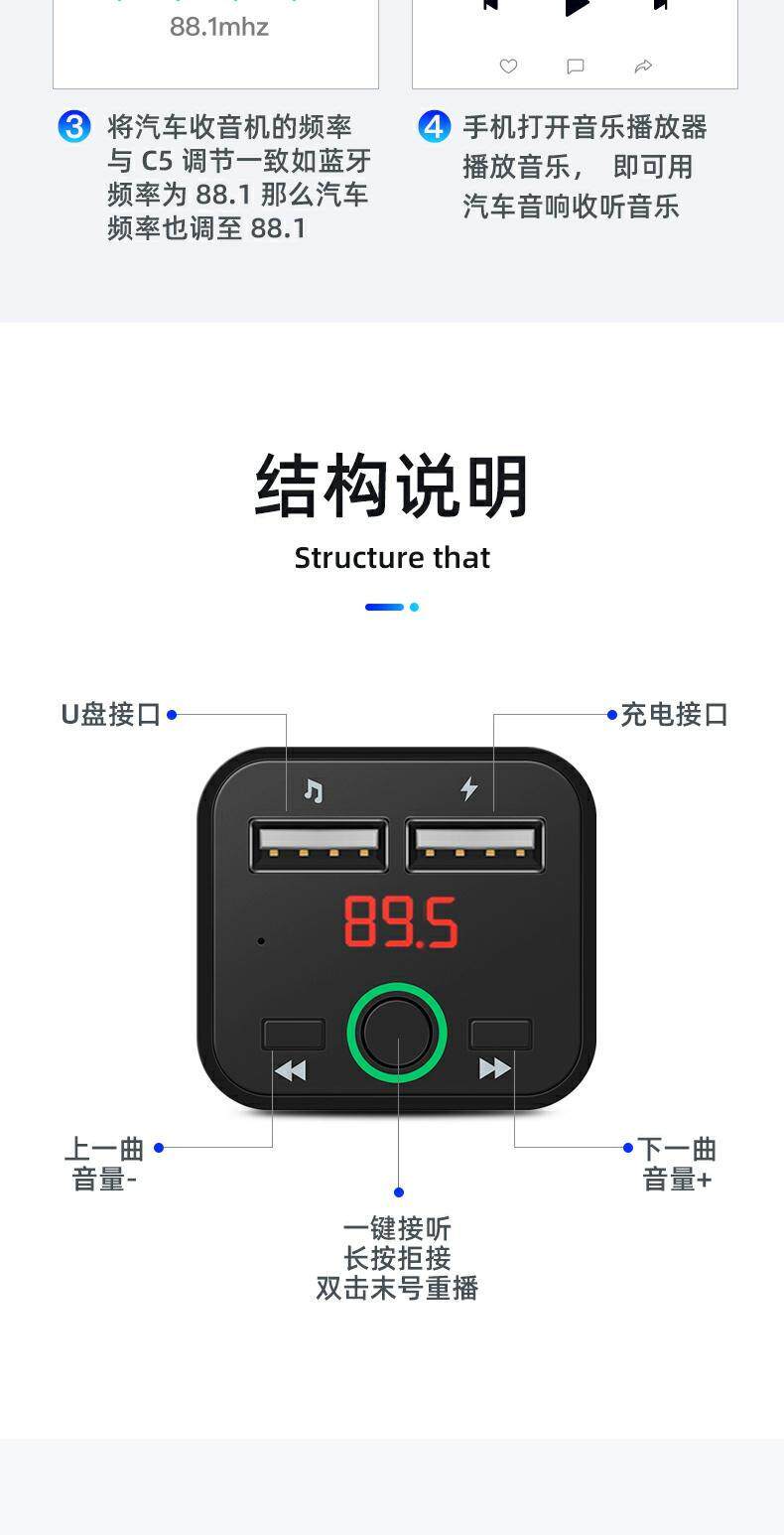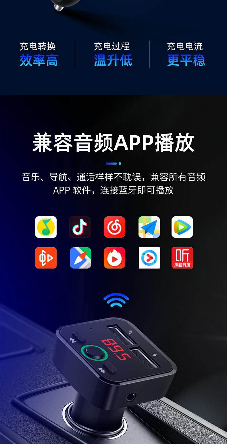 New Bluetooth 5.0 Non -Destructive Player U Disk FM запуск бесплатно от двойной USB -автомобильной зарядки Bluetooth Mp3 Player