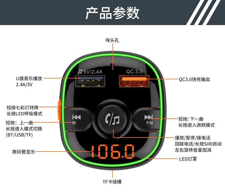 Беспроводная пусковая установка, музыкальный мобильный телефон, разноцветный светильник, bluetooth, MP3