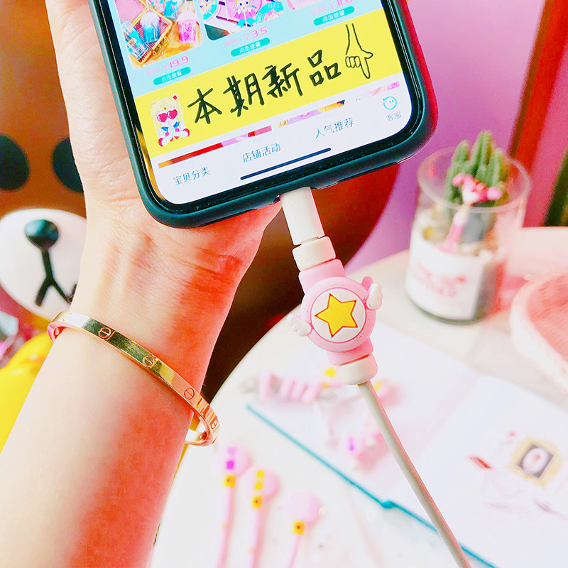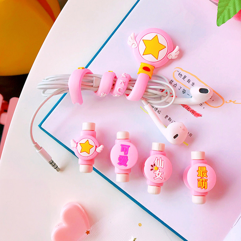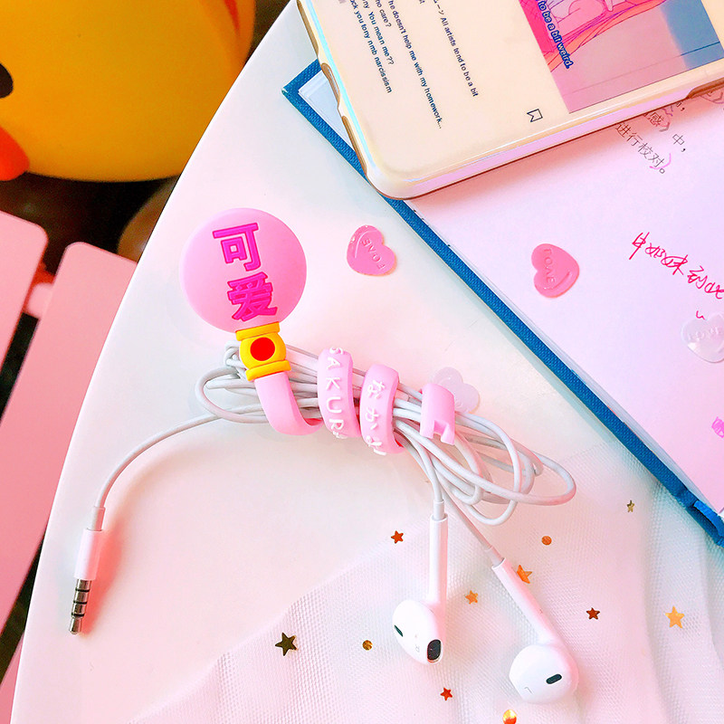 Милый мобильный телефон, защитный зарядный кабель, свежие портативные наушники