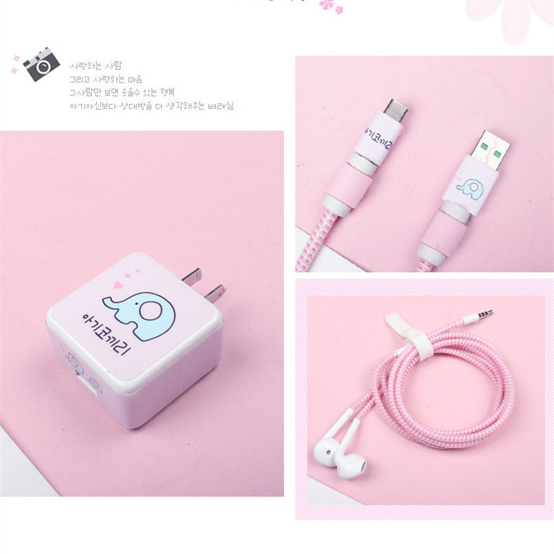 Зарядный кабель, защитный чехол, мобильный телефон, светоотражательное зарядное устройство, мультяшные наушники