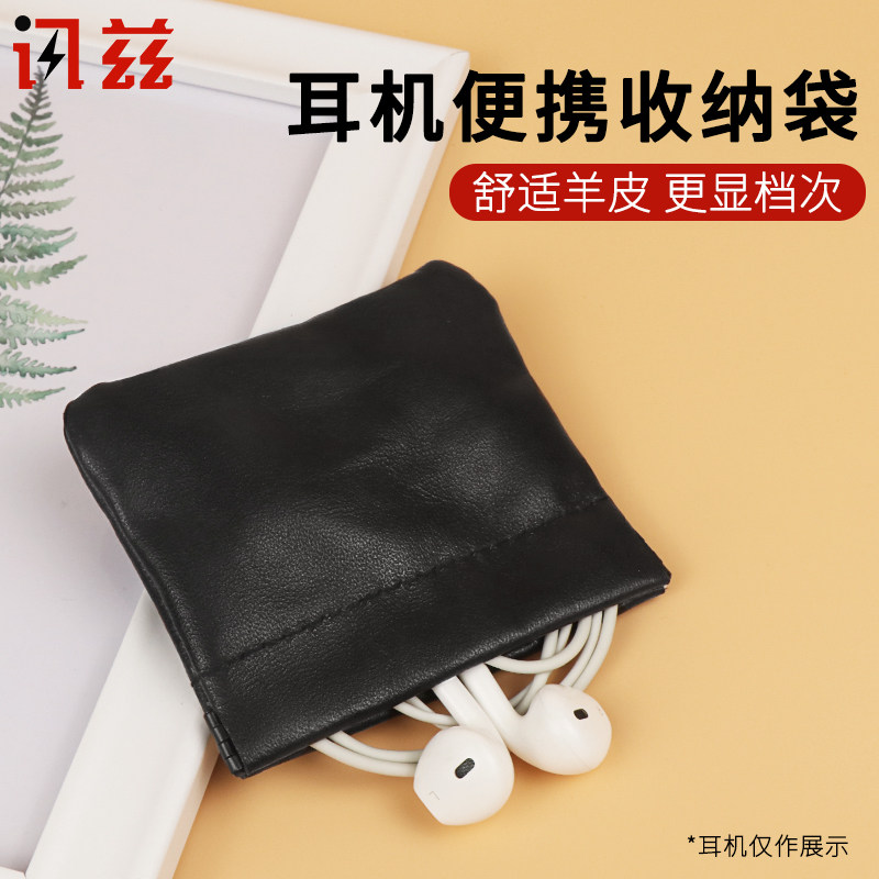 Apple, наушники, маленькая сумка-органайзер, беруши, тканевый мешок, сумка, портативный USB-флеш-накопитель из овчины, универсальный цифровой защитный чехол, bluetooth, из натуральной кожи