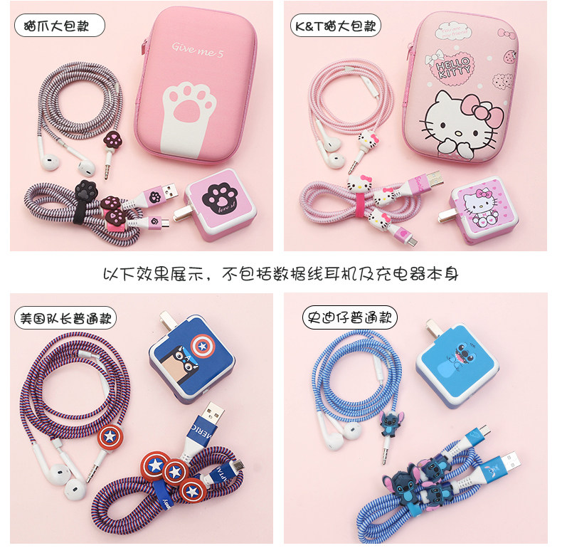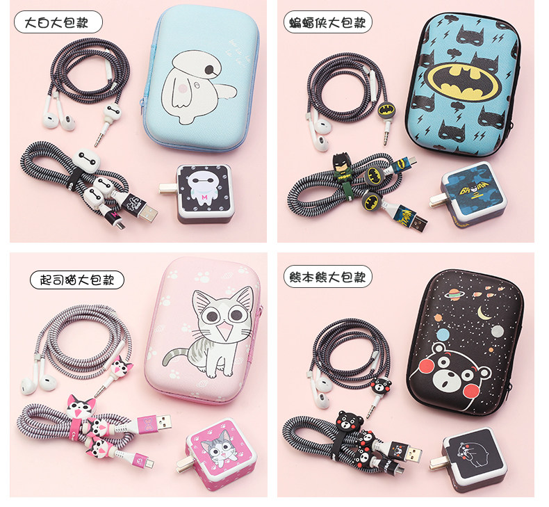 Защитный чехол, мобильный телефон, защитное зарядное устройство, наушники, зарядный кабель, светоотражательная мультяшная креативная система хранения, 3x, x23