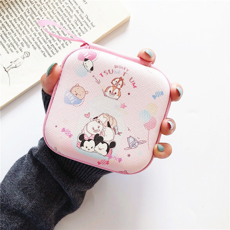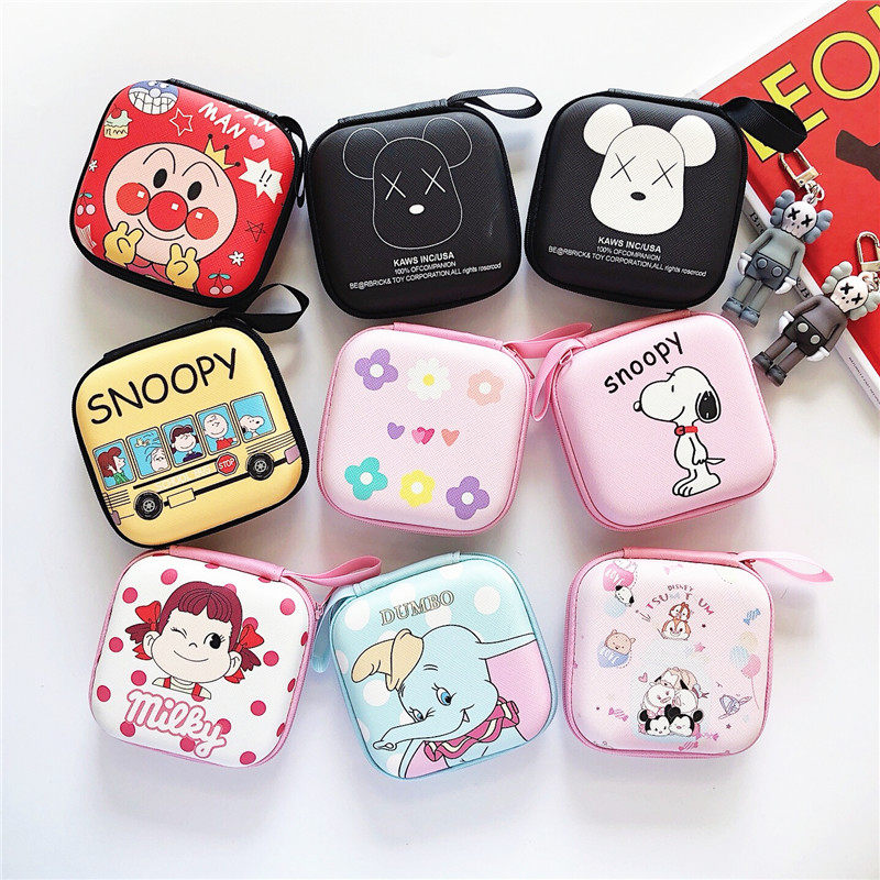 Квадратные мультяшные наушники, сумка-органайзер, зарядное устройство, кошелек, коробка