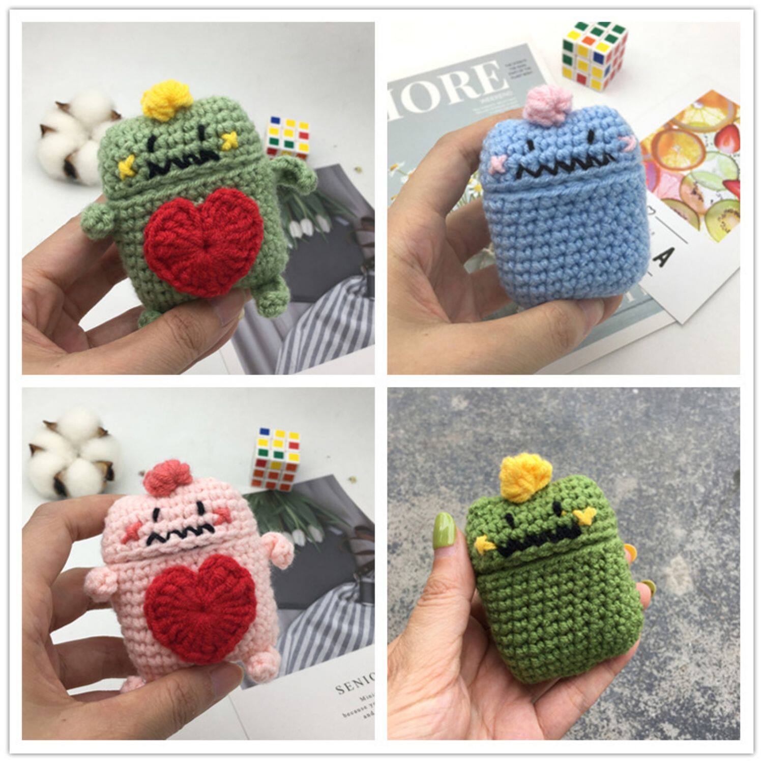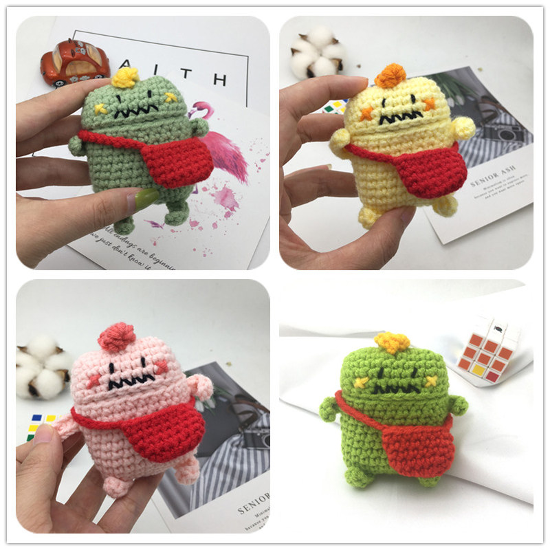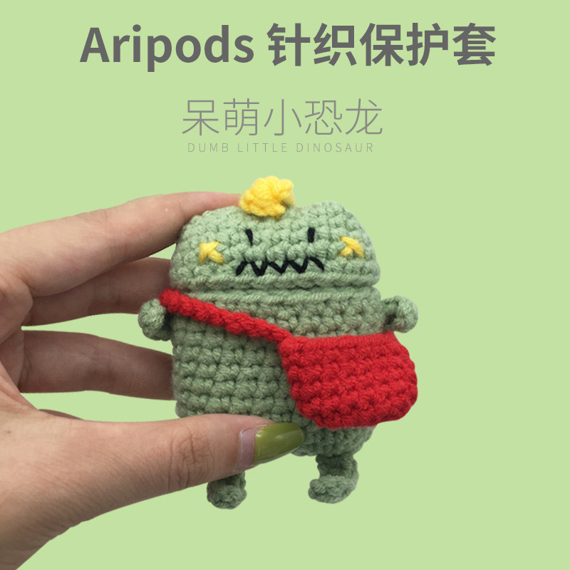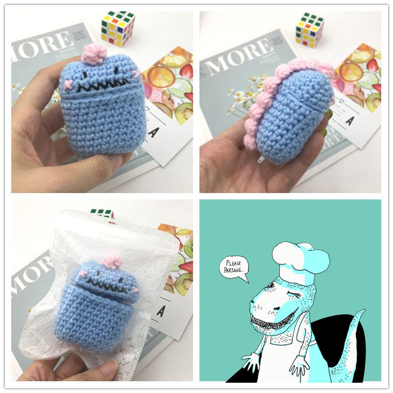 Apple, совместимый милый защитный чехол, трикотажный динозавр, беспроводные плетеные наушники, bluetooth