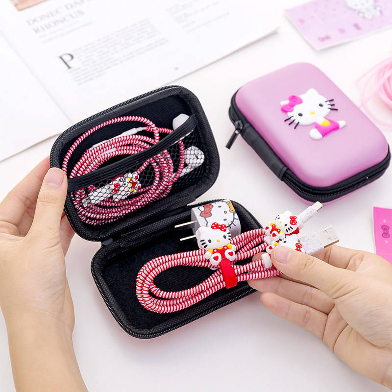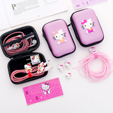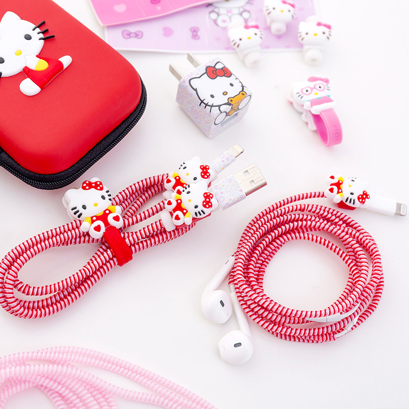 Apple, мультяшный мобильный телефон, защитный защитный чехол, наушники, зарядный кабель, наклейка