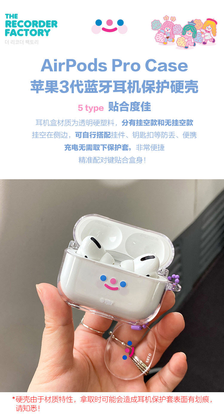 TRF Корейская милая смайлия Apple Airpods Pro Protective Cover Wireless Bluetooth Hearset 3 Generation Прозрачная жесткая оболочка