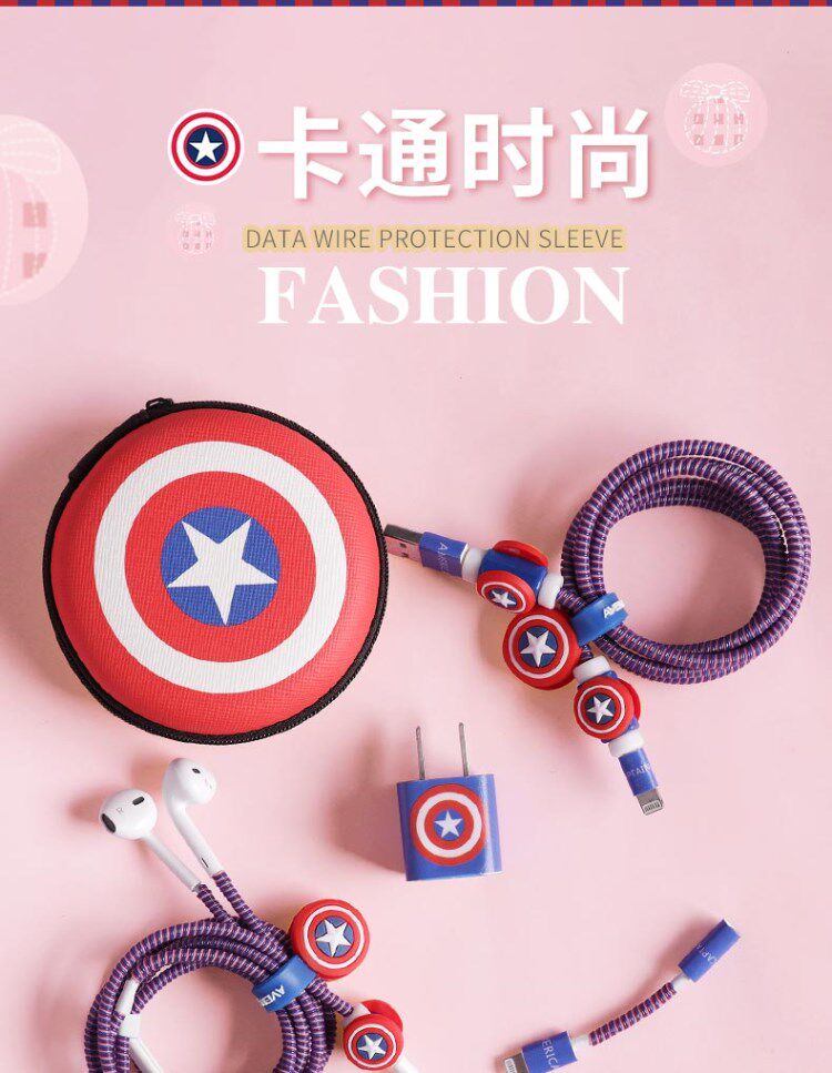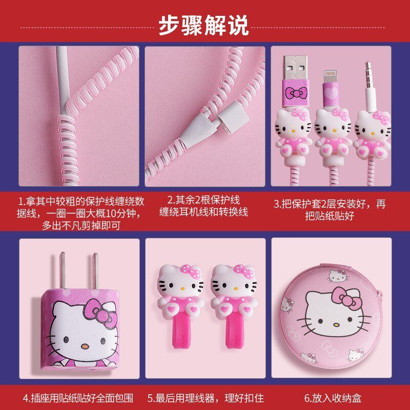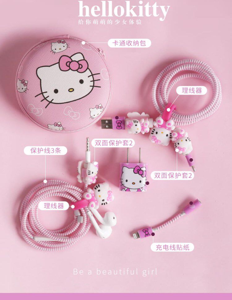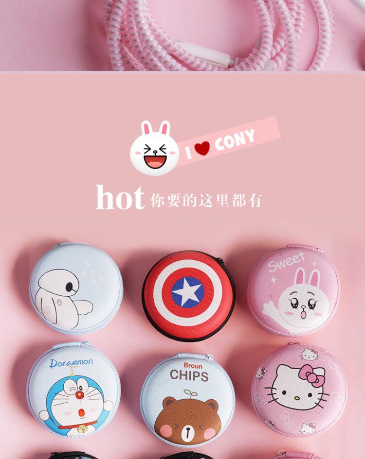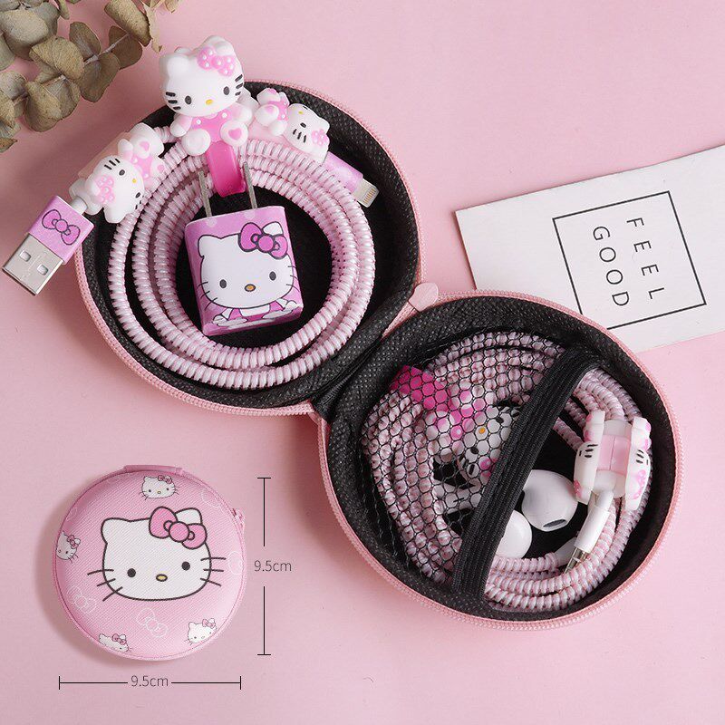 Наушники, защитный чехол, защитный зарядный кабель, мультяшная милая сумка-органайзер