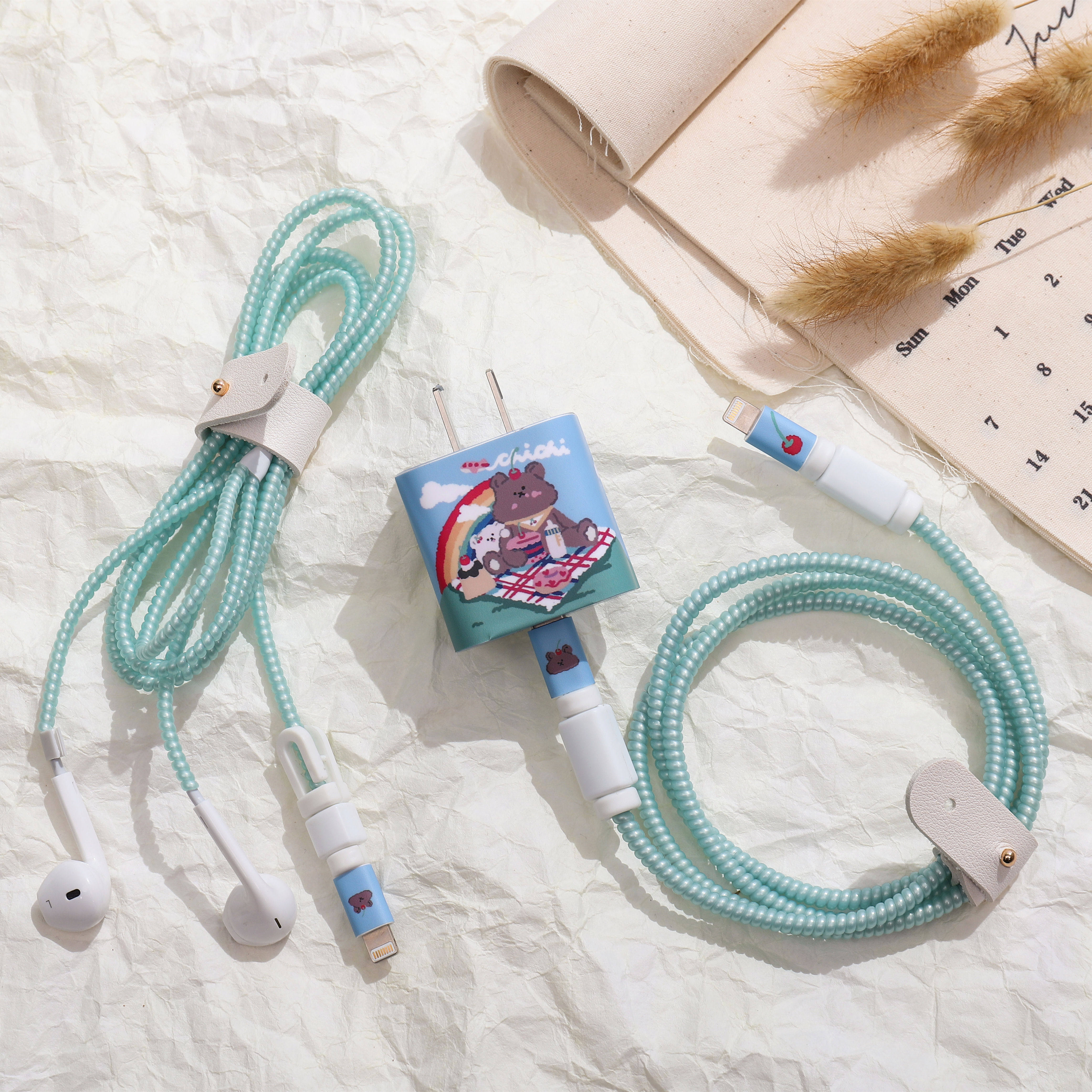 Apple, брендовый iPhone 13, защитный чехол, светоотражательное зарядное устройство, с медвежатами