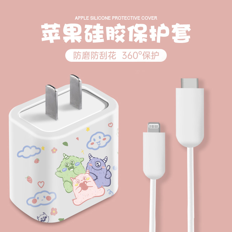 Apple, зарядное устройство, защитный чехол, мобильный телефон, мультяшный милый силиконовый мужской универсальный блок питания подходит для мужчин и женщин, 18W, iphone, 11promax, защита при падении, 20W