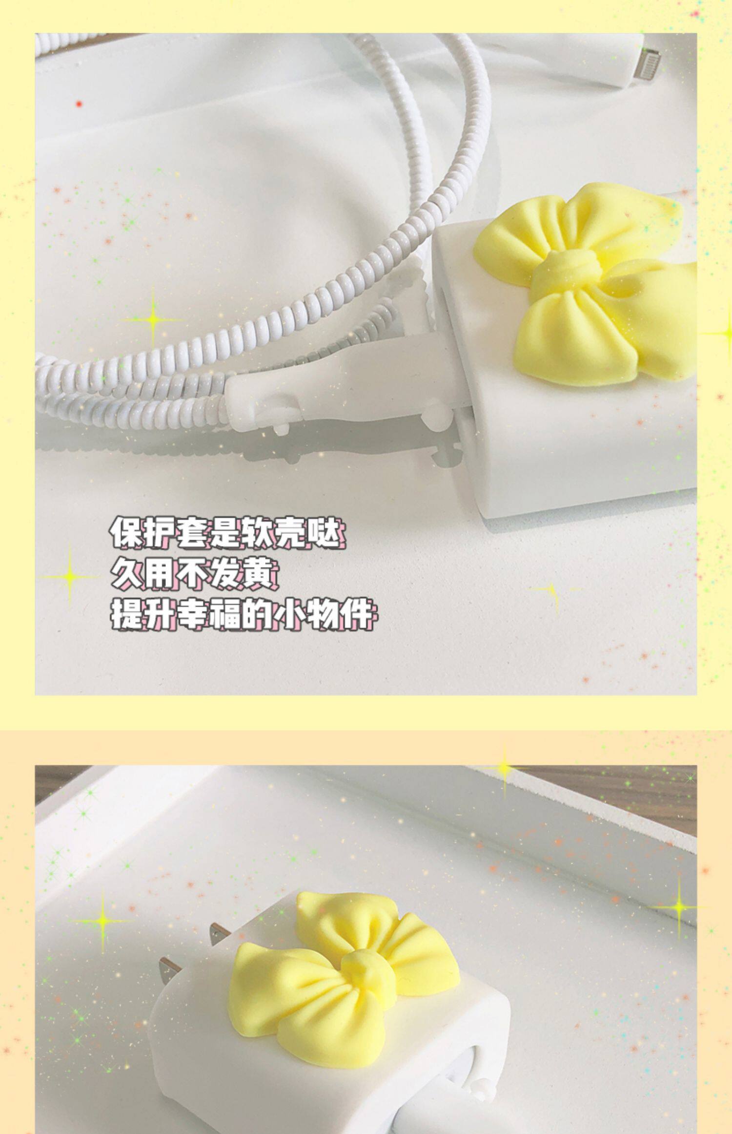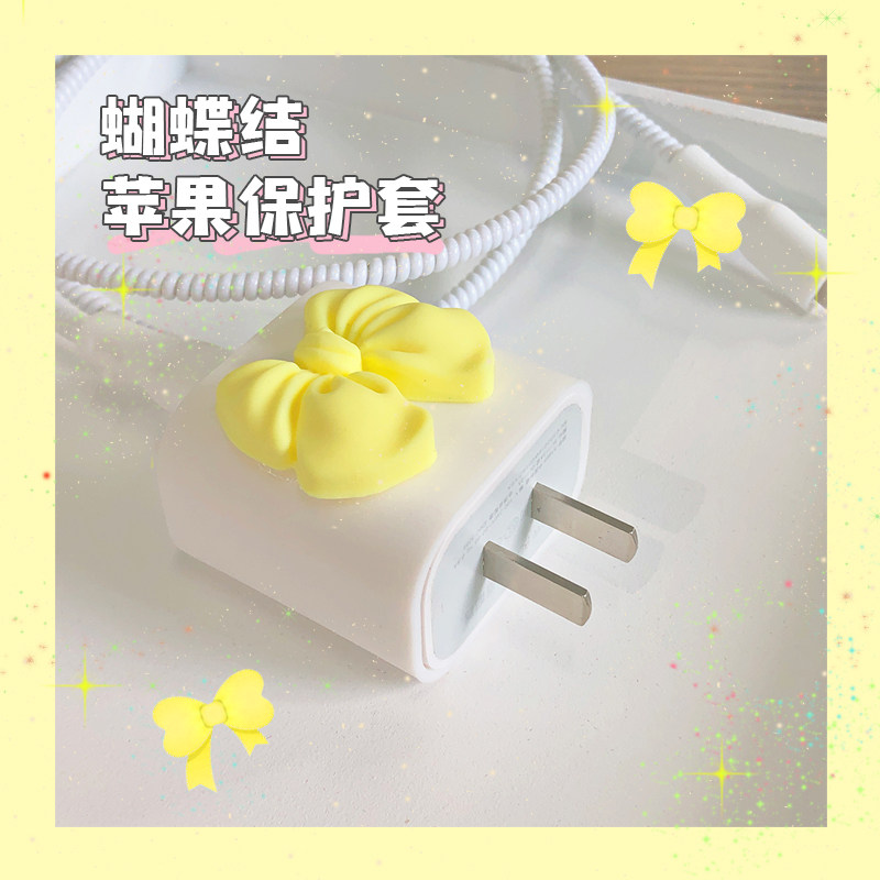- Apple, iPhone20, силиконовое зарядное устройство, желтый комплект с бантиком, 20W