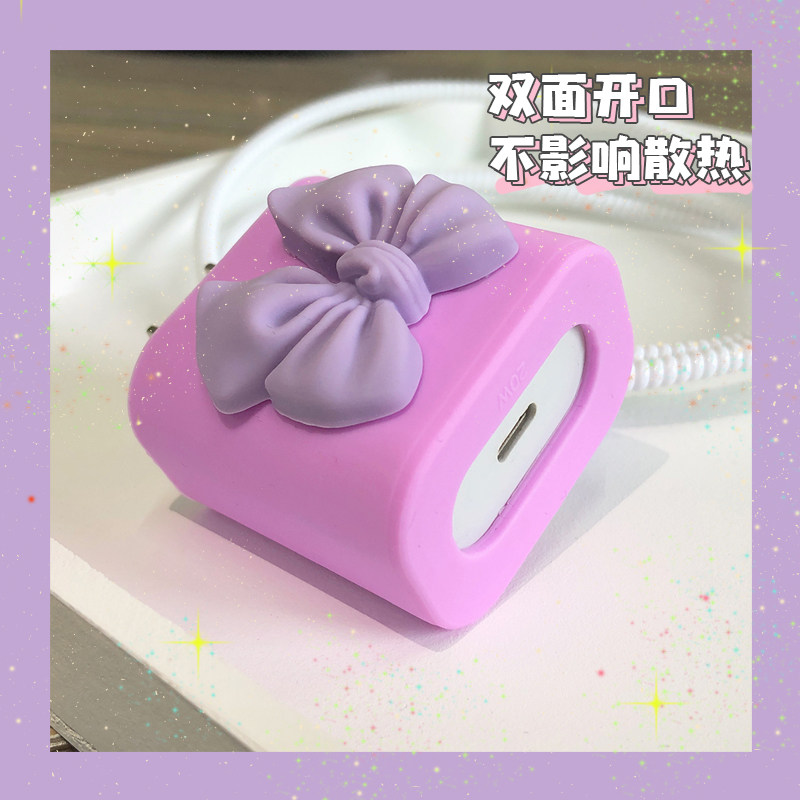 - Apple, iPhone20, силиконовое зарядное устройство, розовый комплект с бантиком, 20W
