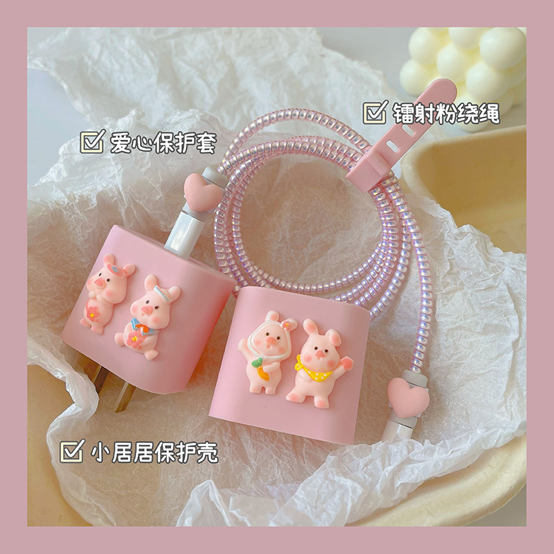- Цветочная свинья раковина + любовь + лазерная розовая веревка