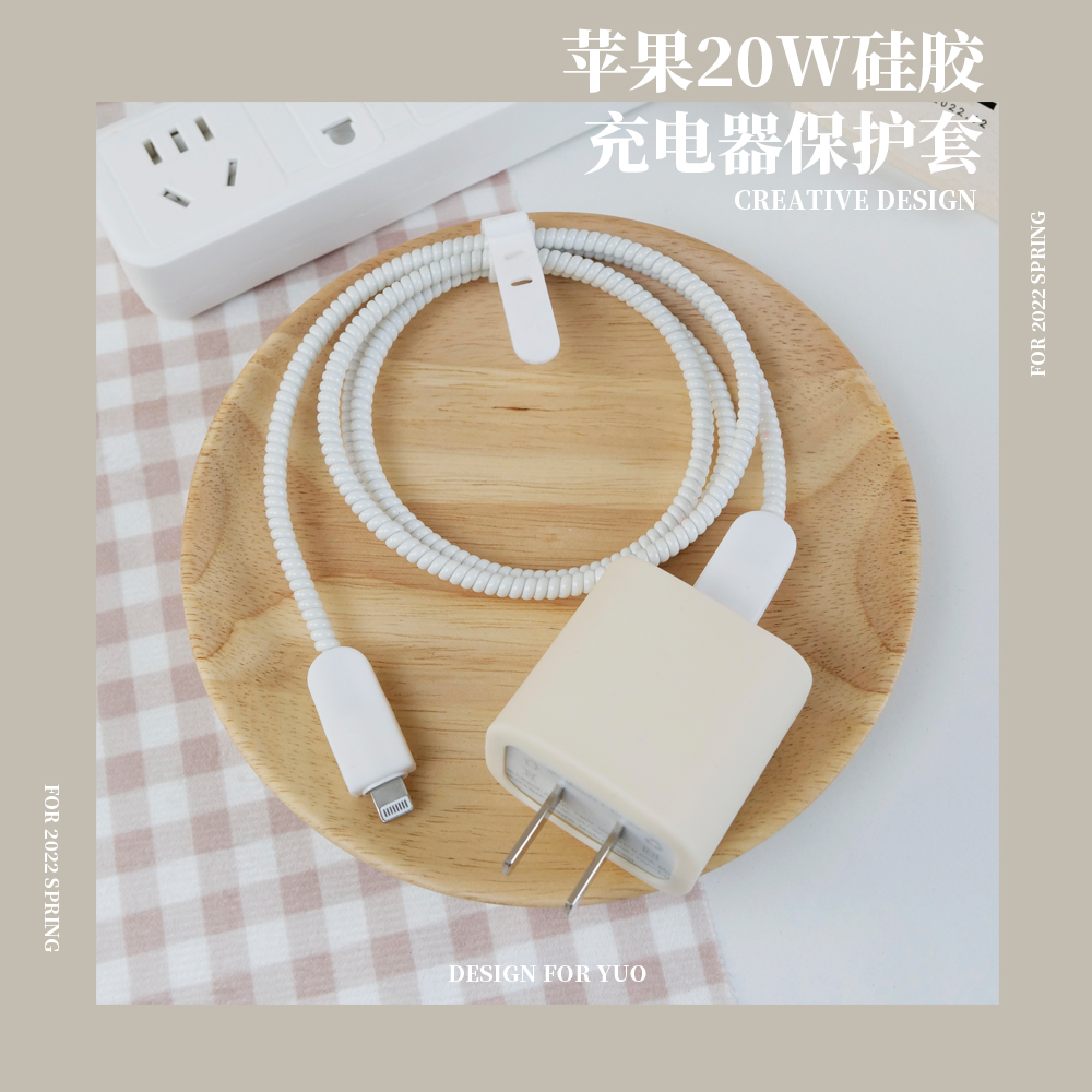 - Apple, iPhone20, зарядное устройство, силиконовый защитный чехол, бежевый комплект, 20W, 3 предмета