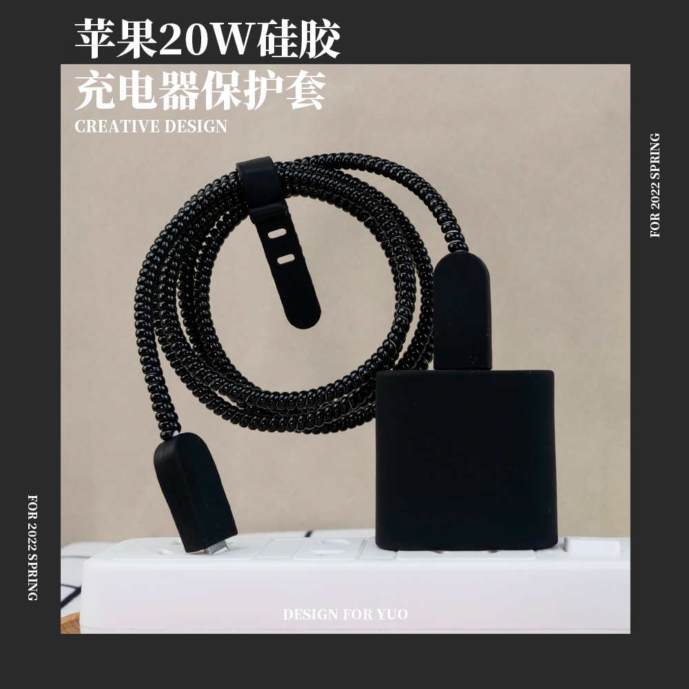 - Apple, iPhone20, зарядное устройство, силиконовый защитный чехол, черный комплект, 20W, 3 предмета