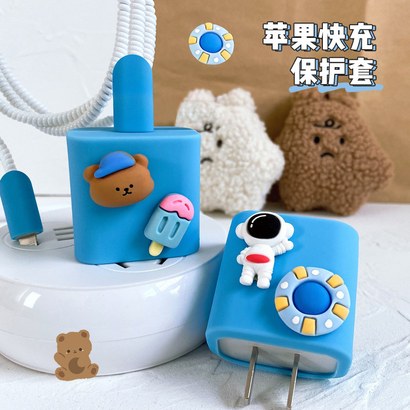 - Apple 20W Синий силиконовый пластырь [мороженое] - Голубая шляпа Медведь + Голубое розовое мороженое [одиночная головка]