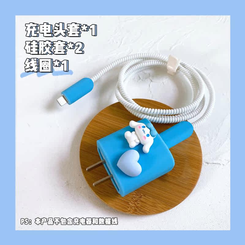 - Apple 20W Синий силиконовый пятно [мороженое] - Большой ушной собака + голубая любовь сердца [одиночная голова]