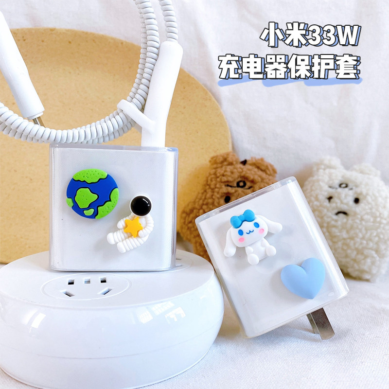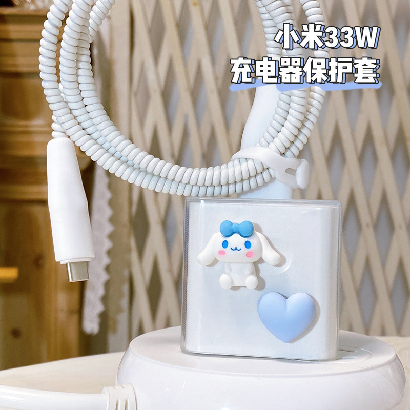 Подходит для защитной крышки зарядного устройства xiaomi 10 33 Вт быстро зарядка Redmi Note9pro/K40/K30PRO/10S Cartoon Patch Data Cable Защитный набор анти -заряжающихся кабеля данных запутанный веревку
