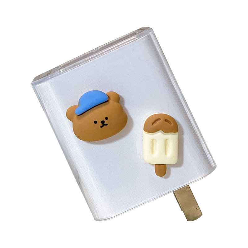 - Xiaomi 30W/33W Прозрачный набор патчей -Bear (синяя шляпа)+мороженое (коричневый белый) [Set]