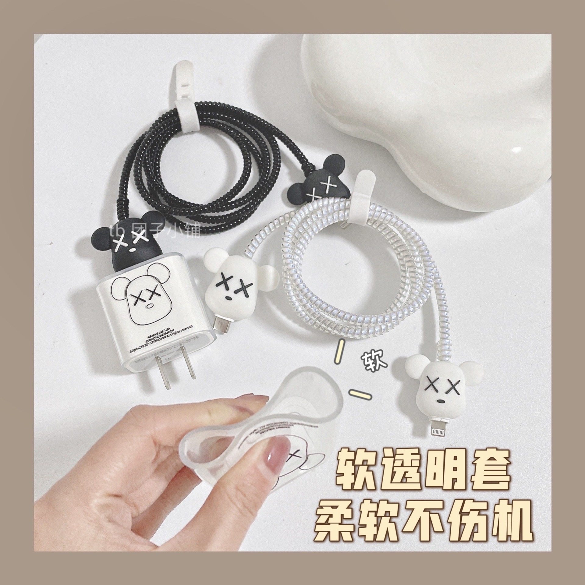- Белая марионетка насильственная прозрачная набор для медведя+защита кабеля данных+