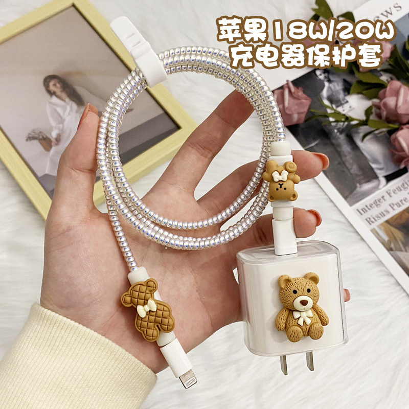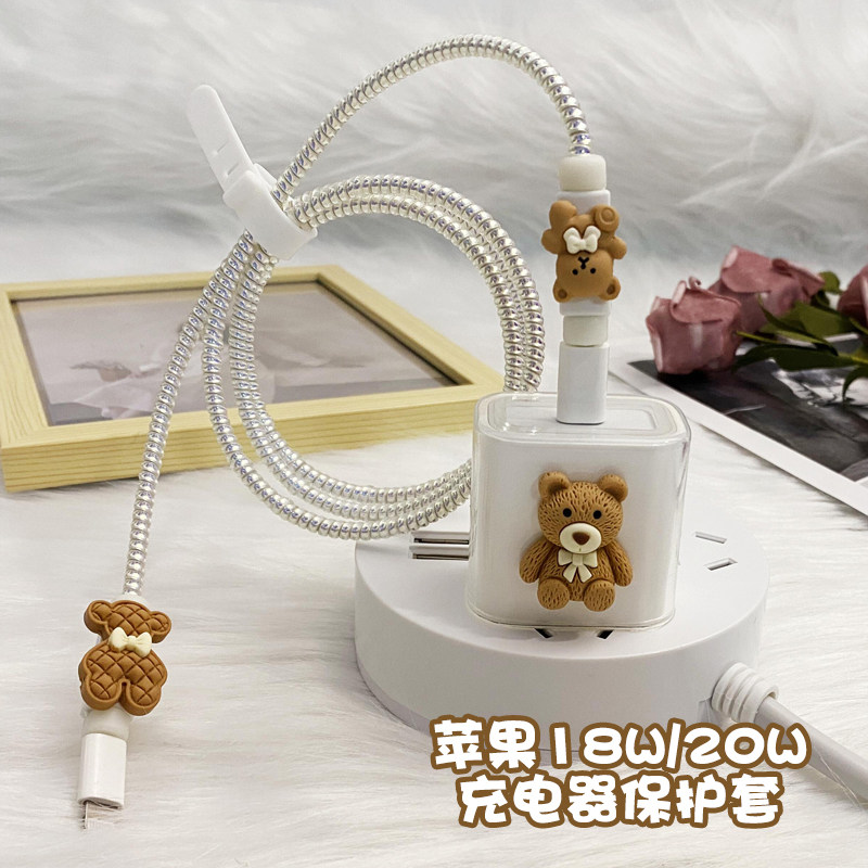 Apple, зарядное устройство, прозрачный защитный чехол, шлем, совместимый iPhone 13, мобильный телефон, наушники, с медвежатами, 20W, iphone, 12promax, 2020