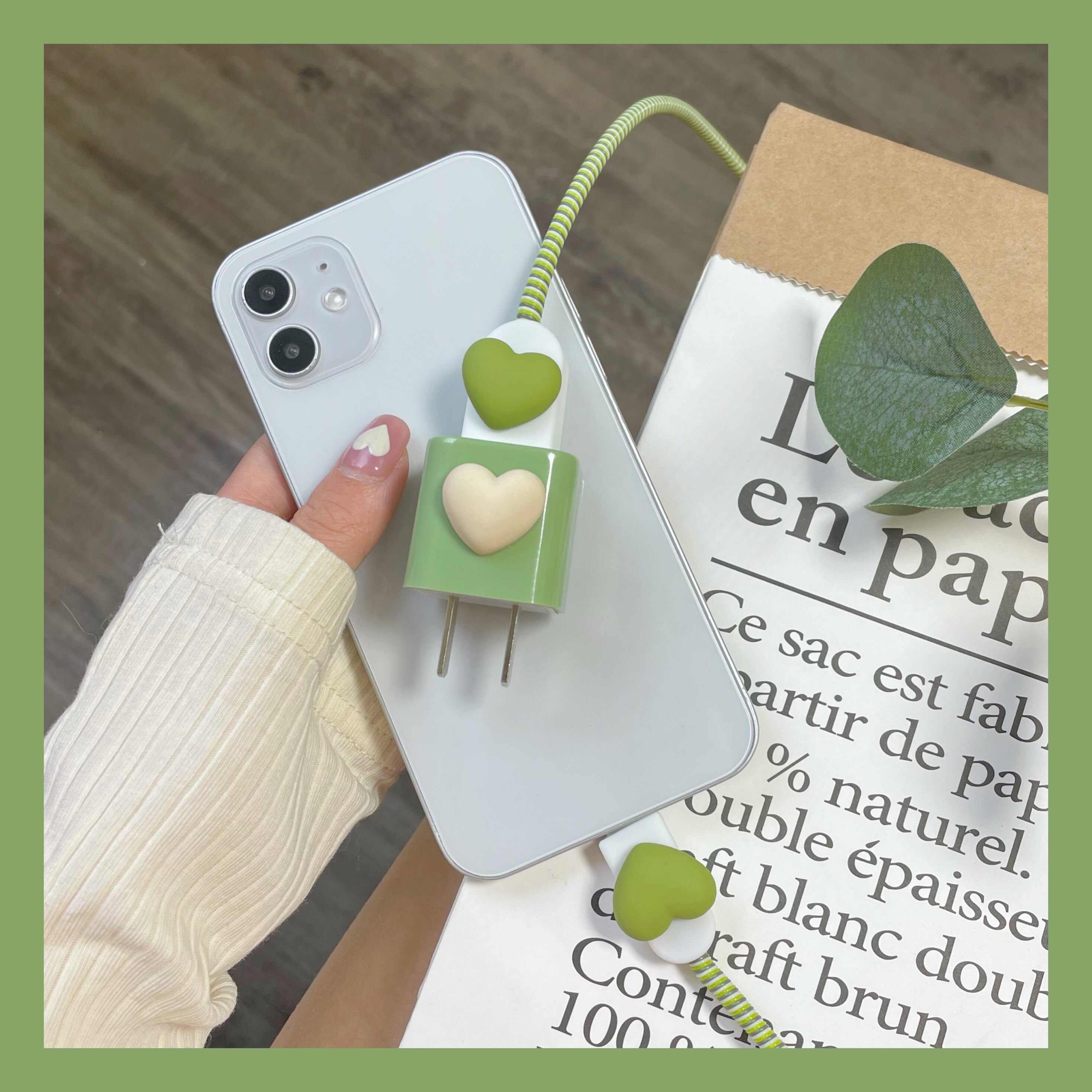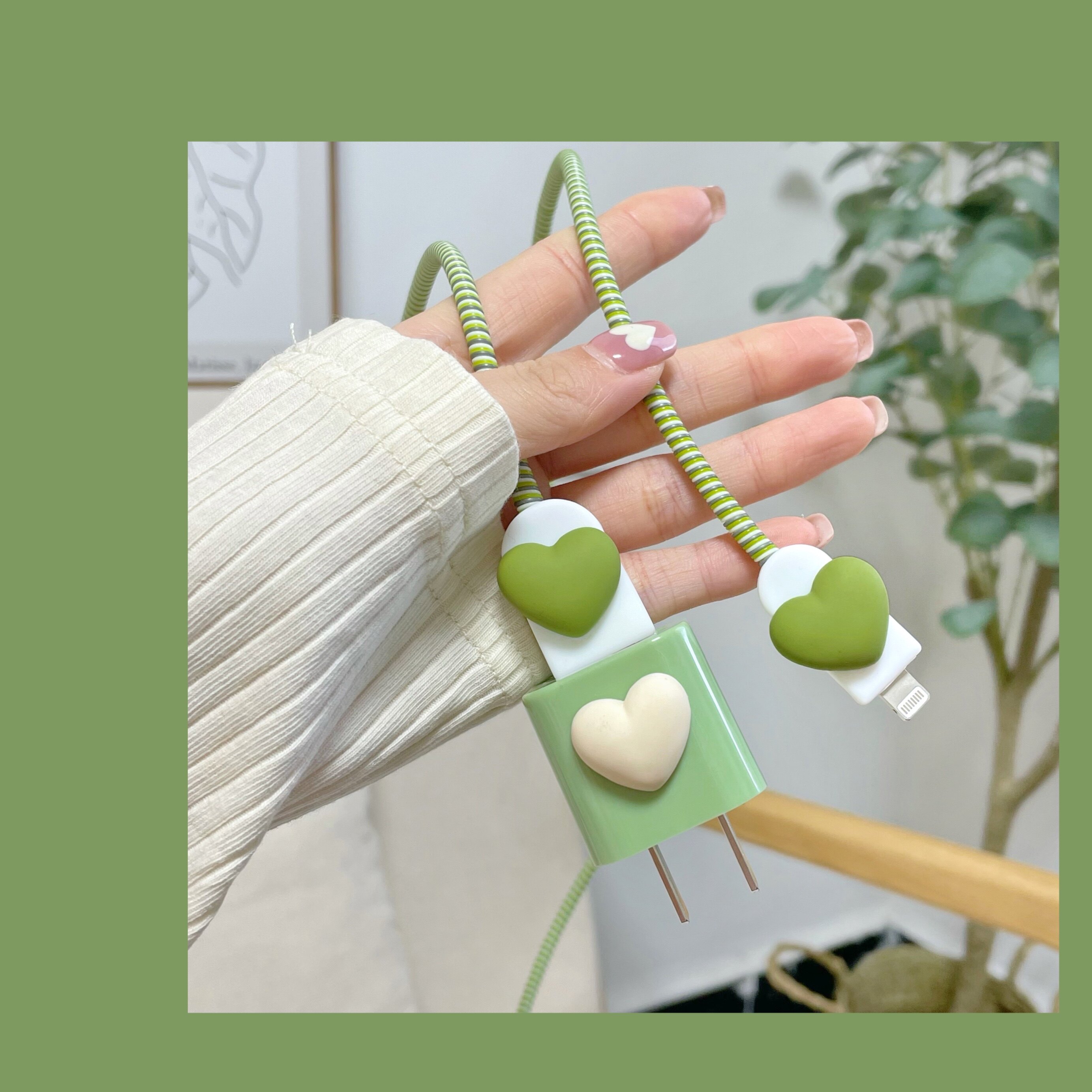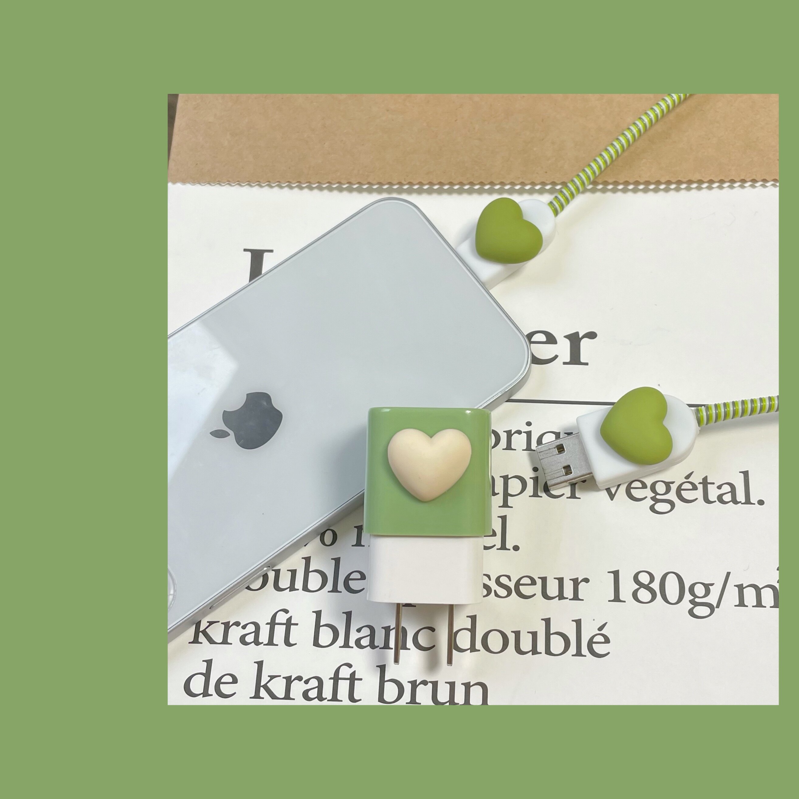 | Цвет: | Бежевое зеленое зарядное устройство, 5W, Мороженое бежевое любовь зеленый набор + защита кабеля данных 5 Вт |