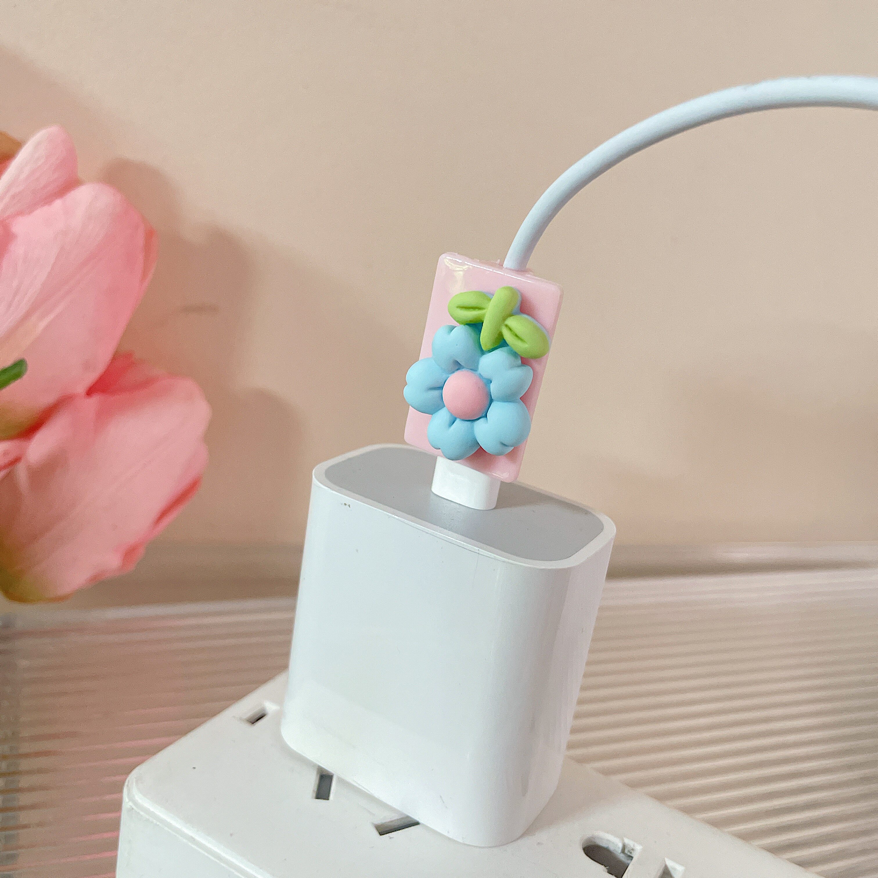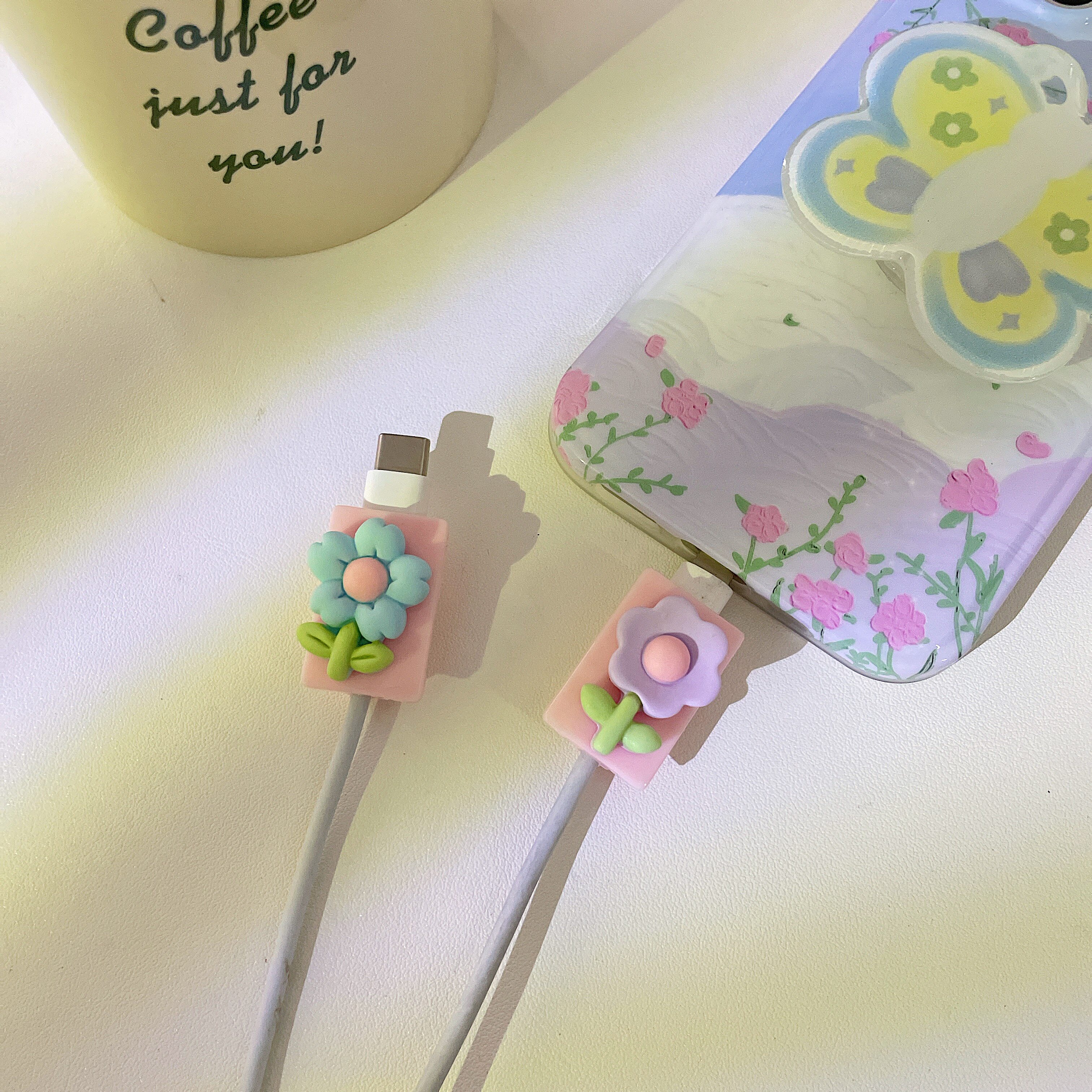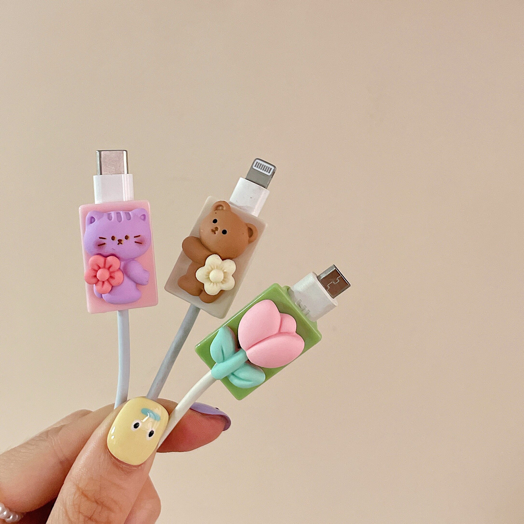- 【Зеленый нижний цвет кожи цветок】 Cartoon Data Cable Cable Copect